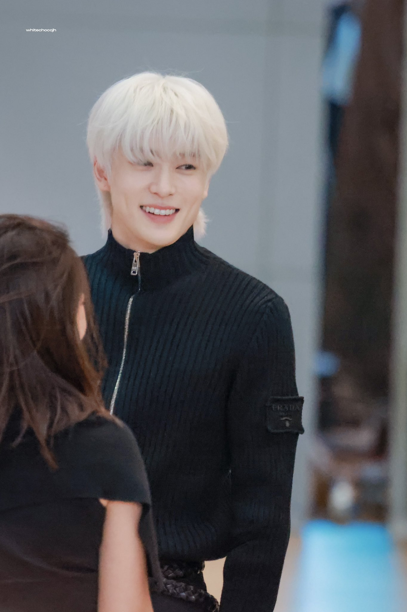 Jaehyun NCT đến Ý để tham dự show diễn Xuân Hè 2025 của thương hiệu Prada. Nam đại sứ toàn cầu của nhà mốt Ý gây sốc visual khi chọn màu tóc tẩy bạch kim.