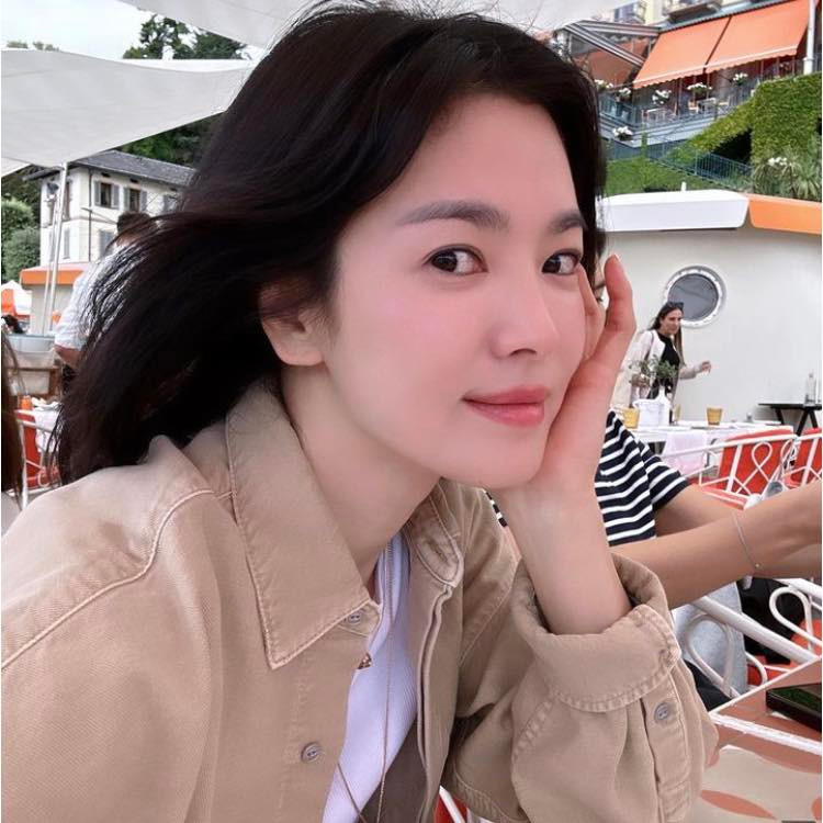 "Chị đẹp" Song Hye Kyo xuất hiện với vẻ ngoài đơn giản, năng động. Cô trang điểm nhẹ nhàng, diện quần jeans, áo phông trắng, áo khoác dạ màu be. Nữ diễn viên hoàn thiện tạo hình với mũ lưỡi trai và túi xách màu nâu.