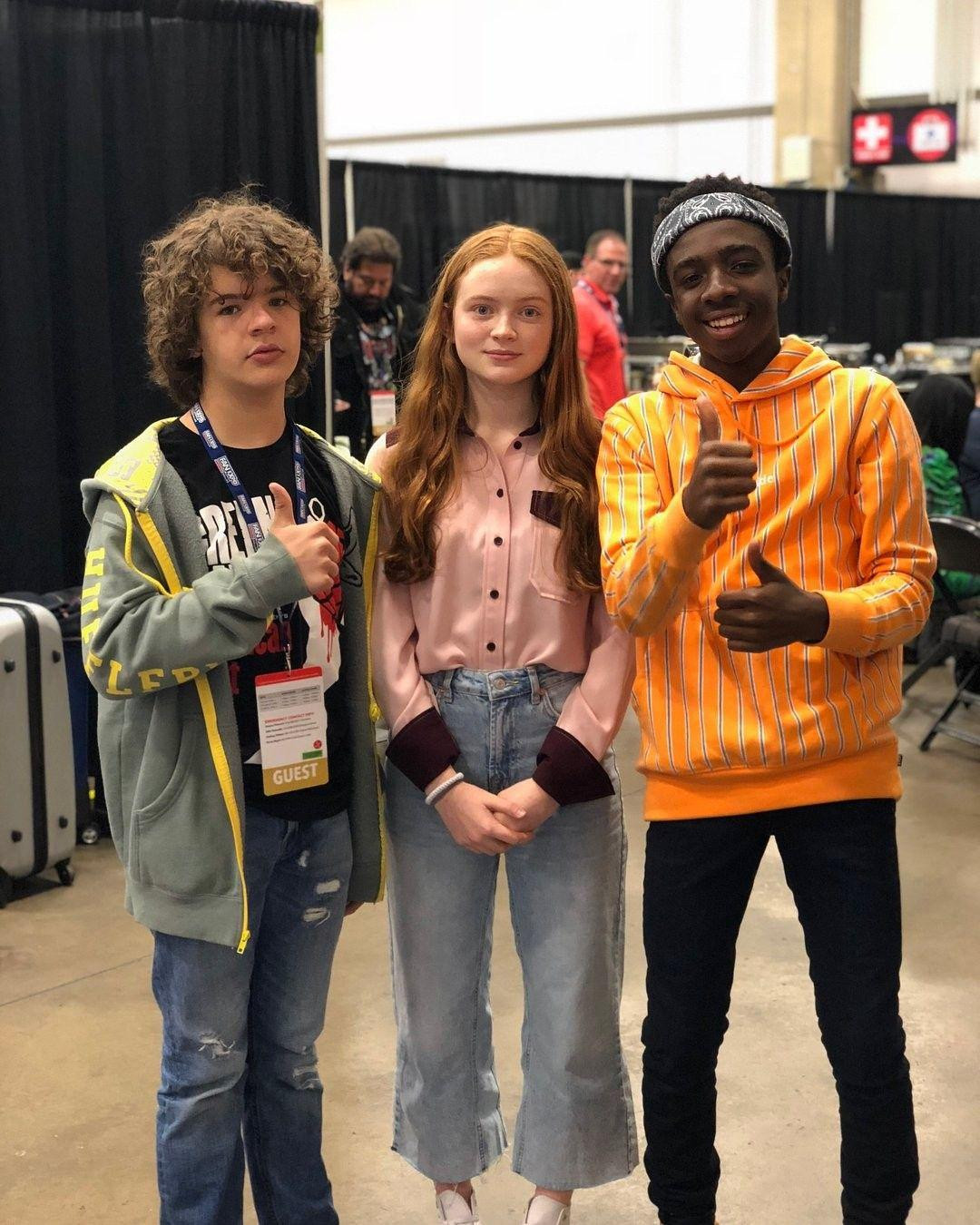 Trước khi làm việc chung trong Stranger Things, Gaten Matarazzo (vai Dustin), Caleb McLaughlin (vai Lucas) và Sadie Sink (vai Max) đã biết nhau từ trước. Cả ba gặp nhau trên sân khấu nhạc kịch Broadway. Gaten Matarazzo đóng Les Misérables, Caleb McLaughlin tham gia The Lion King và Sadie Sink diễn trong Annie.