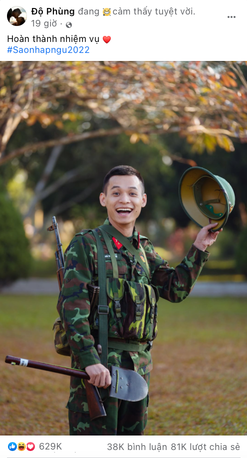 "Tôi đọc comment trên mạng thấy ông nào bảo đi Sao Nhập Ngũ là diễn. Diễn gì mà diễn, từ ngày đầu đến ngày cuối không thở được một tí nào. Nhiều lúc tôi tưởng là tôi hẹo luôn ở đấy rồi" - Độ Mixi nói về trải nghiệm của bản thân tại Sao Nhập ngũ. Đặc biệt, Tộc Trưởng tâm sự rằng: "Đây là một kỷ niệm đáng nhớ nhưng chắc là tôi chỉ trải nghiệm một lần thôi".