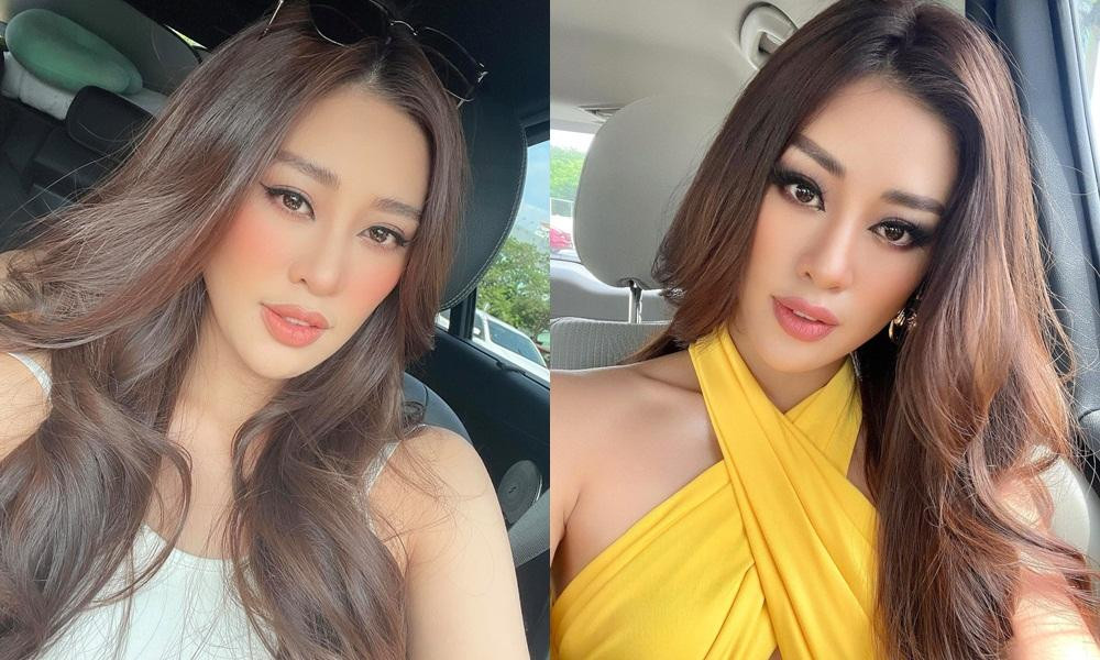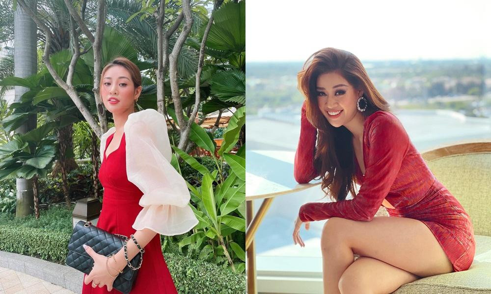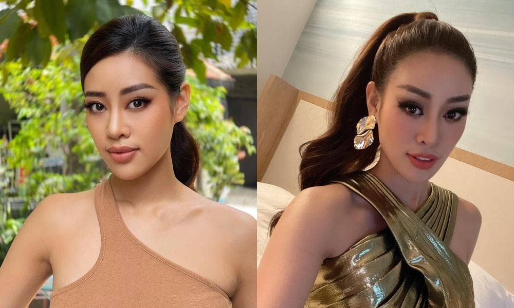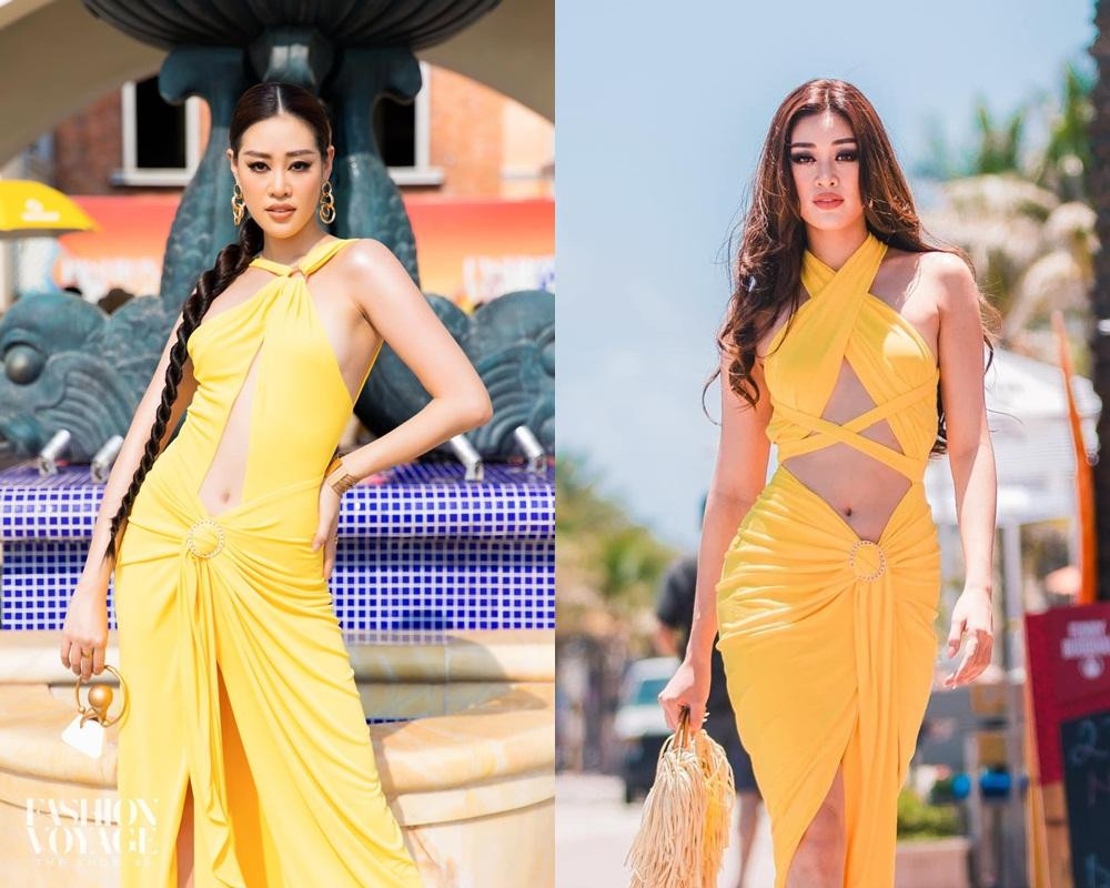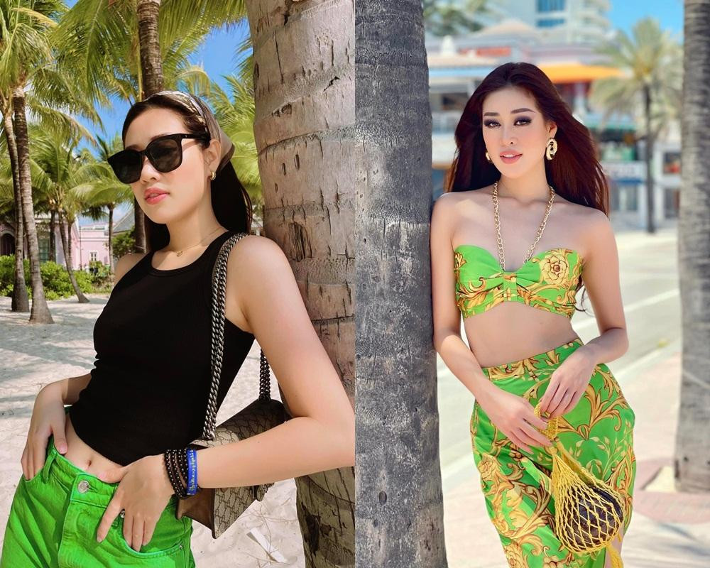 Ngay sau khi kết thúc Miss Universe, Hoa hậu Khánh Vân đã diện lại một set đồ xanh rực rỡ mà cô từng mặc trong cuộc thi. Cũng là trang phục màu xanh với phong cách trẻ trung khỏe khoắn nhưng Khánh Vân của vài tháng trước nhìn kém nổi bật hơn bây giờ nhiều.