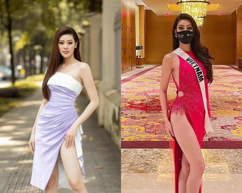 Cùng diện bộ váy vàng với những đường cắt xẻ táo bạo nhưng cách tạo dáng, thần thái và biểu cảm của Khánh Vân khi đến với Miss Universe nhìn tự tin, rạng rỡ hơn nhiều.
