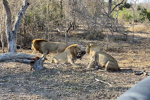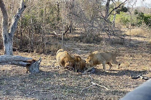 Một lúc sau, 2 con sư tử khác đã tới và tham gia cuộc xâu xé.
