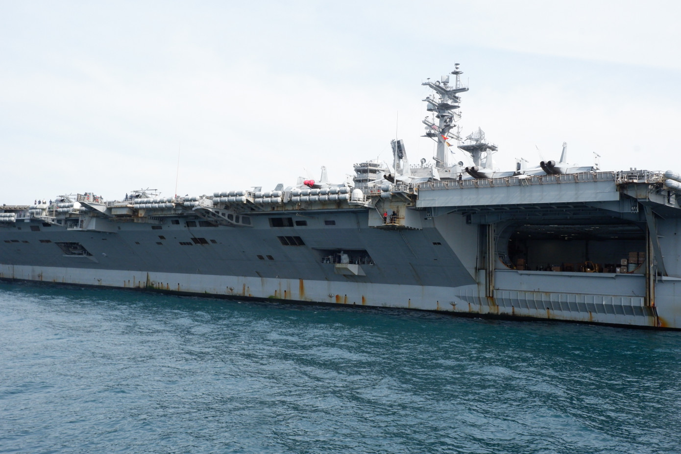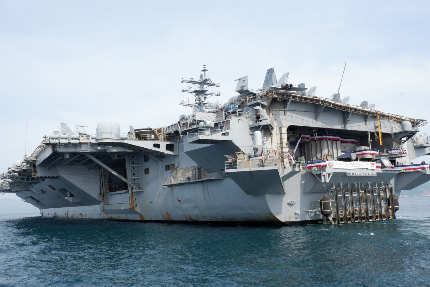 | Tàu sân bay Mỹ USS Ronald Reagan tiến vào vịnh Đà Nẵng. |