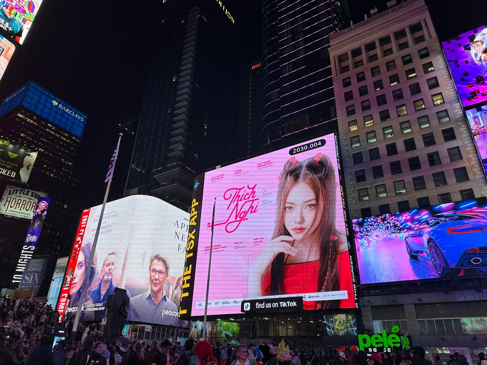 Đặc biệt, hình ảnh của tân binh Thoại Nghi trong lần debut này đã xuất hiện ngay tại Quảng trường Thời Đại (Time Square), New York, Mỹ. Được biết, đây chính là món quà tinh thần cực “khủng” mà FC Thoại Nghi đã dành tặng cho nữ ca sĩ.