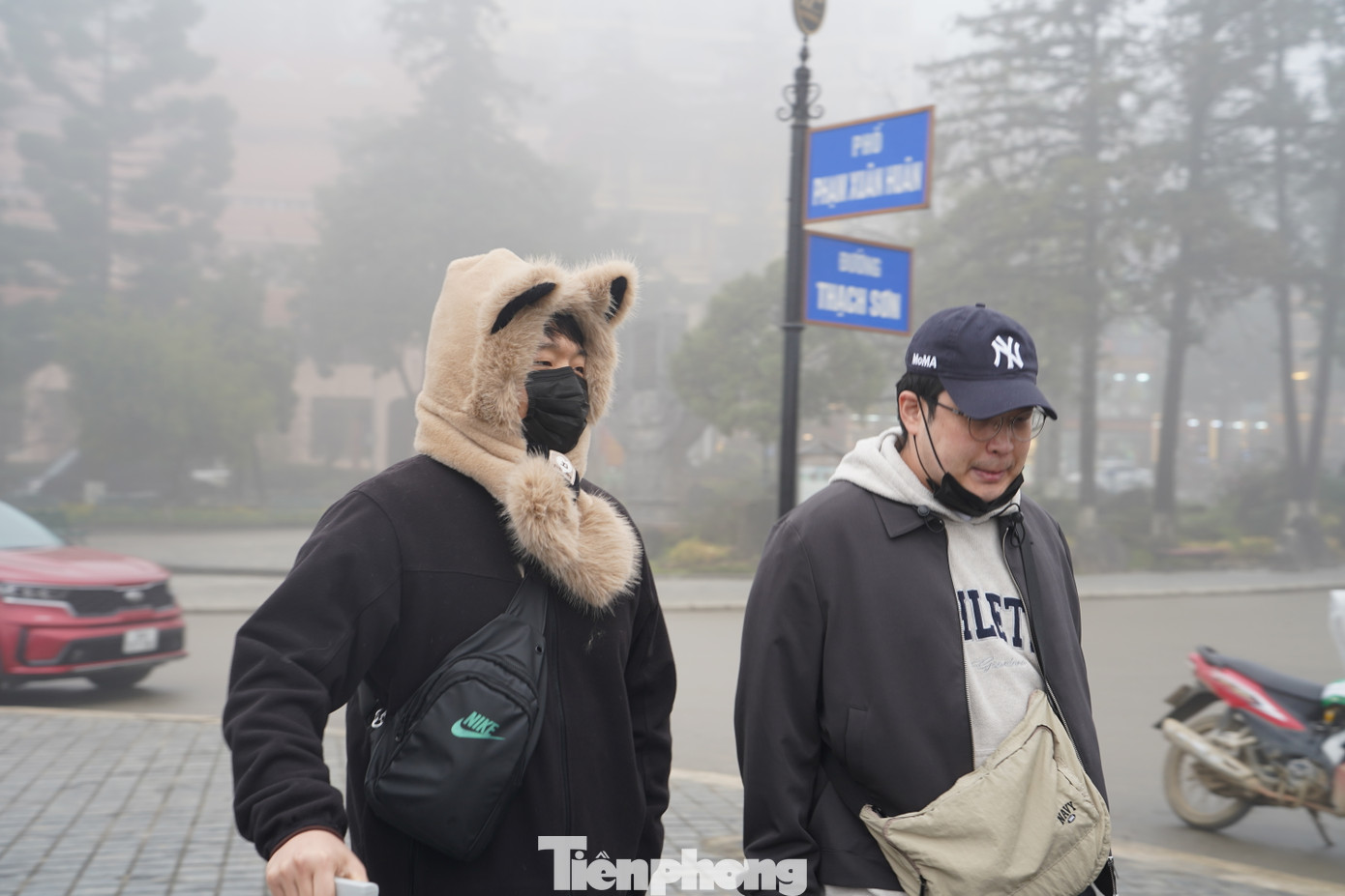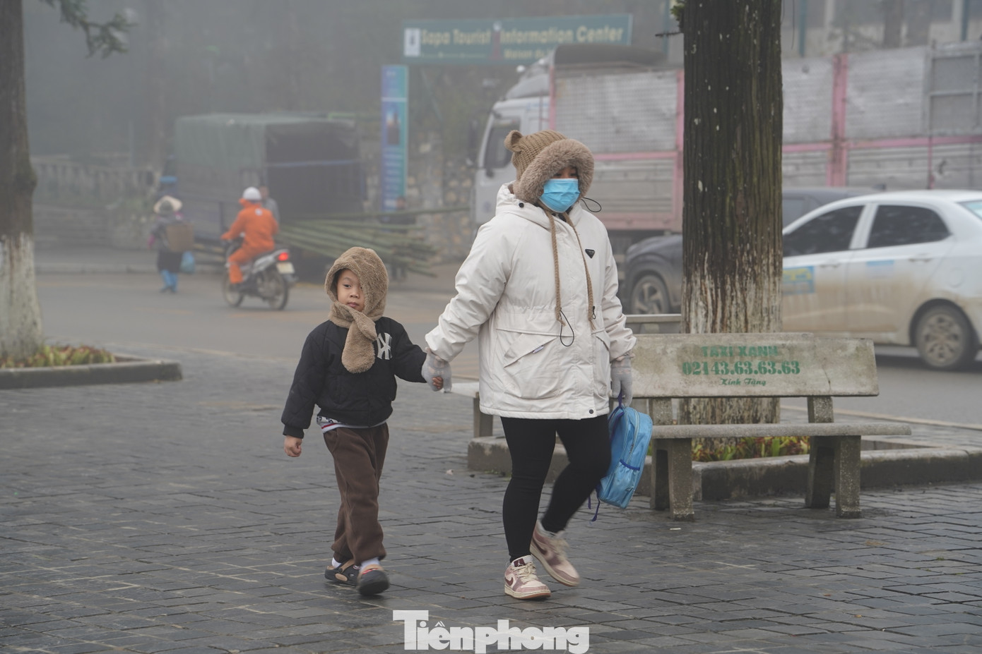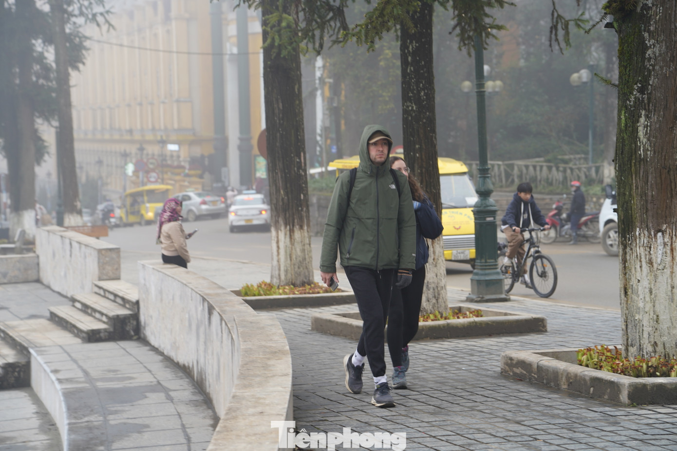 Theo ghi nhận của PV, chiều 19/12, tại trung tâm thị xã Sa Pa, nhiệt độ xuống dưới 10 độ C kèm theo mưa phùn khiến nhiều thời điểm khu vực trung tâm thị xã bị bao phủ bởi sương mù dày đặc.