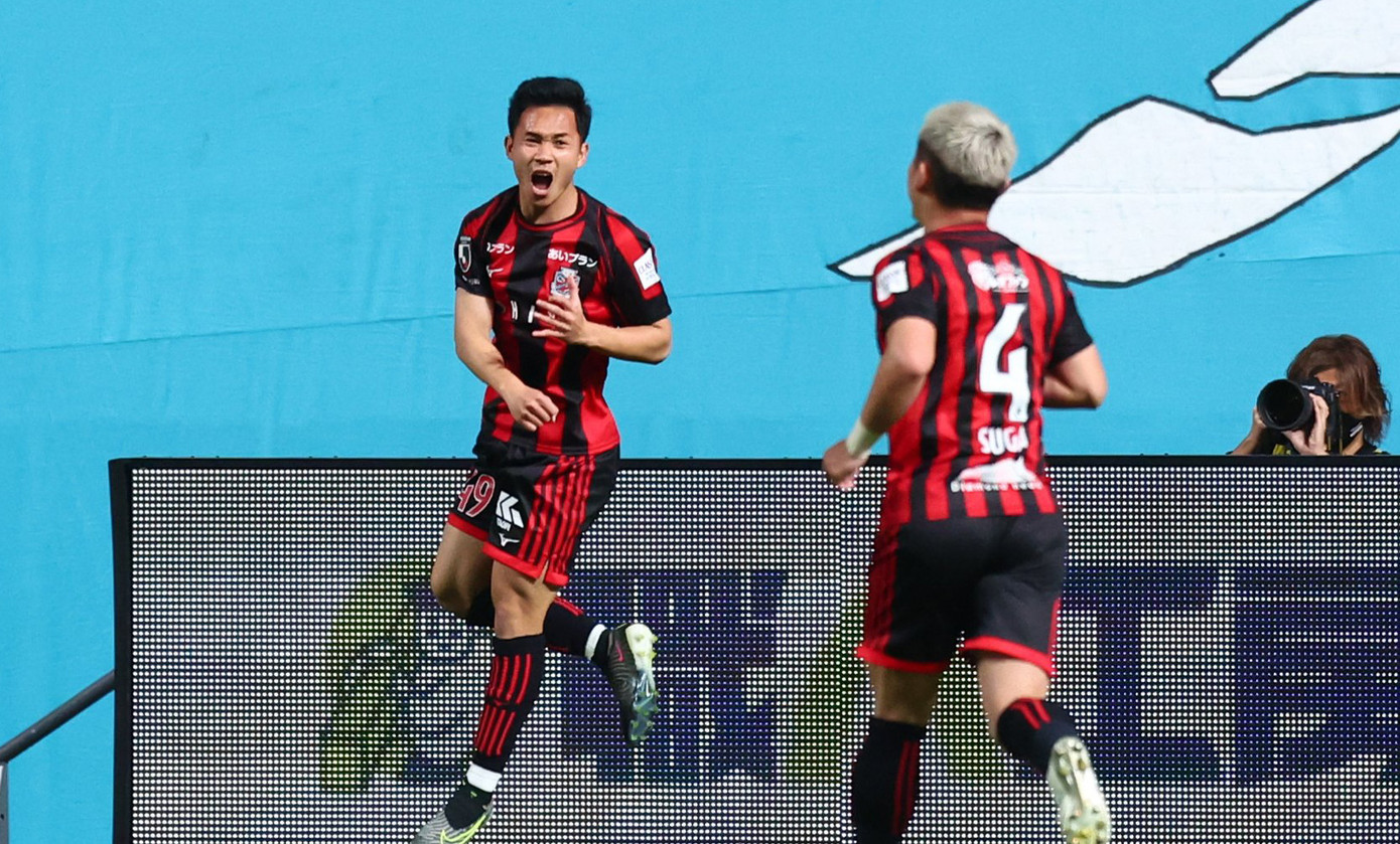 | Supachok ăn mừng bàn thắng cho Sapporo |