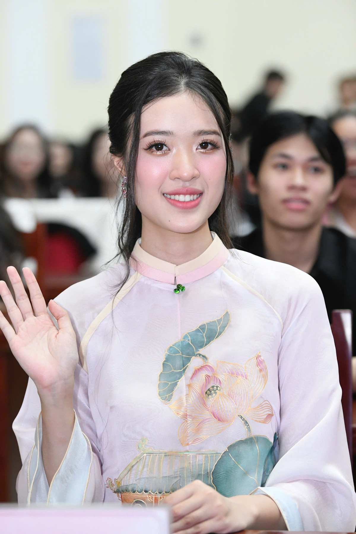 Theo người đẹp Yến Nhi, vẻ đẹp không chỉ là nhan sắc bên ngoài mà còn là tri thức, sự tử tế, nhân ái: “Được ngồi đây chia sẻ với các bạn sinh viên là điều tự hào của tôi. Tôi vô cùng biết ơn hành trình Hoa hậu Việt Nam năm đó đã giúp có Yến Nhi ngày hôm nay”.