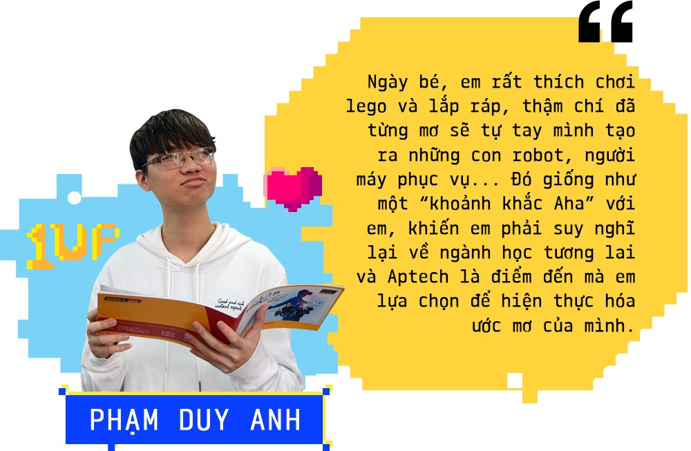 Tuấn: Hẳn vậy rồi ạ! Em quyết định gửi gắm 3 năm THPT của mình ở Aptech vì lý do vô cùng đơn giản - em thích robot và để làm ra được robot thì tất nhiên phải học Lập trình.