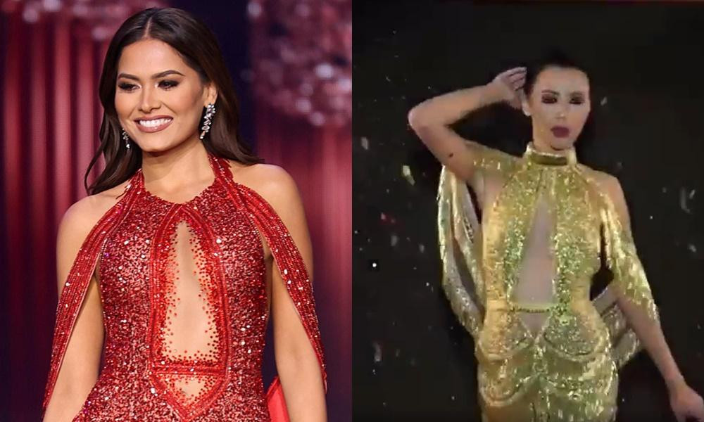 HHTO - Sau khi bị chê mặc xấu, chọn váy với chất liệu dìm dáng thì Tân Hoa hậu Hoàn vũ Andrea Meza lại bị nghi diện váy dạ hội "phiên bản pha-ke" trong đêm Chung kết Miss Universe.