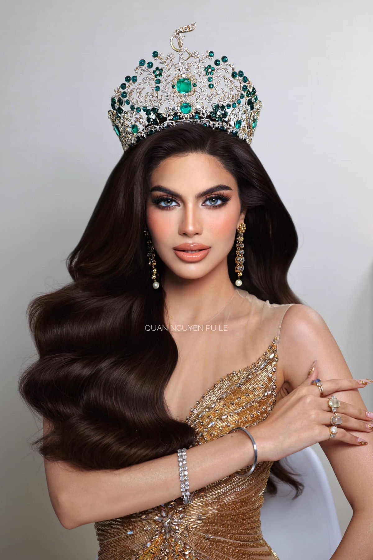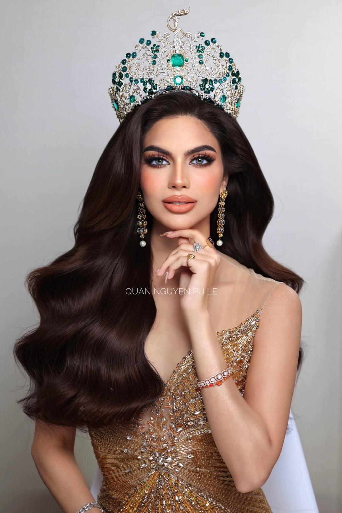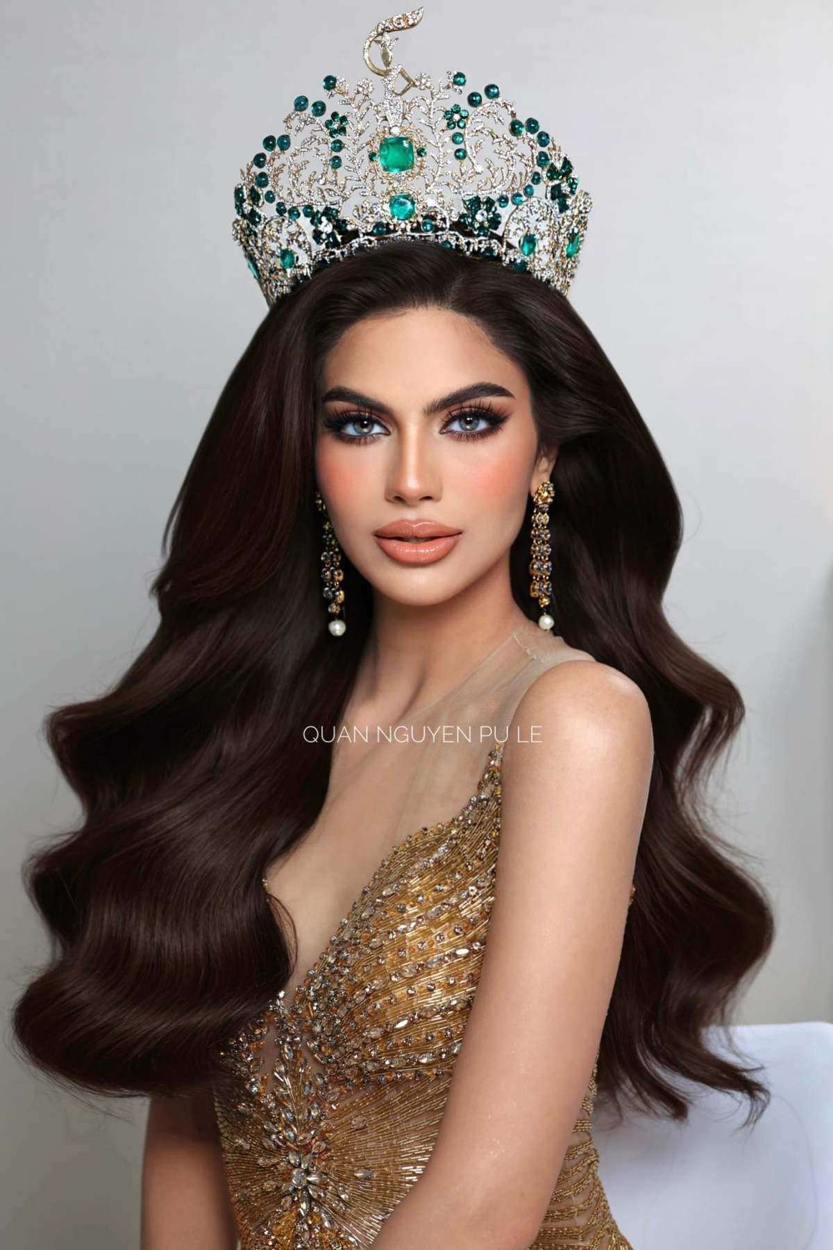 Mới đây, cộng đồng nhan sắc quốc tế chia sẻ bộ ảnh beauty queen đầu tiên của tân Hoa hậu Rachel Gupta. Đáng chú ý, trong bộ ảnh này, nàng hậu được trang điểm bởi hai chuyên gia nổi tiếng của Việt Nam là Quân Nguyễn và Pu Lê.