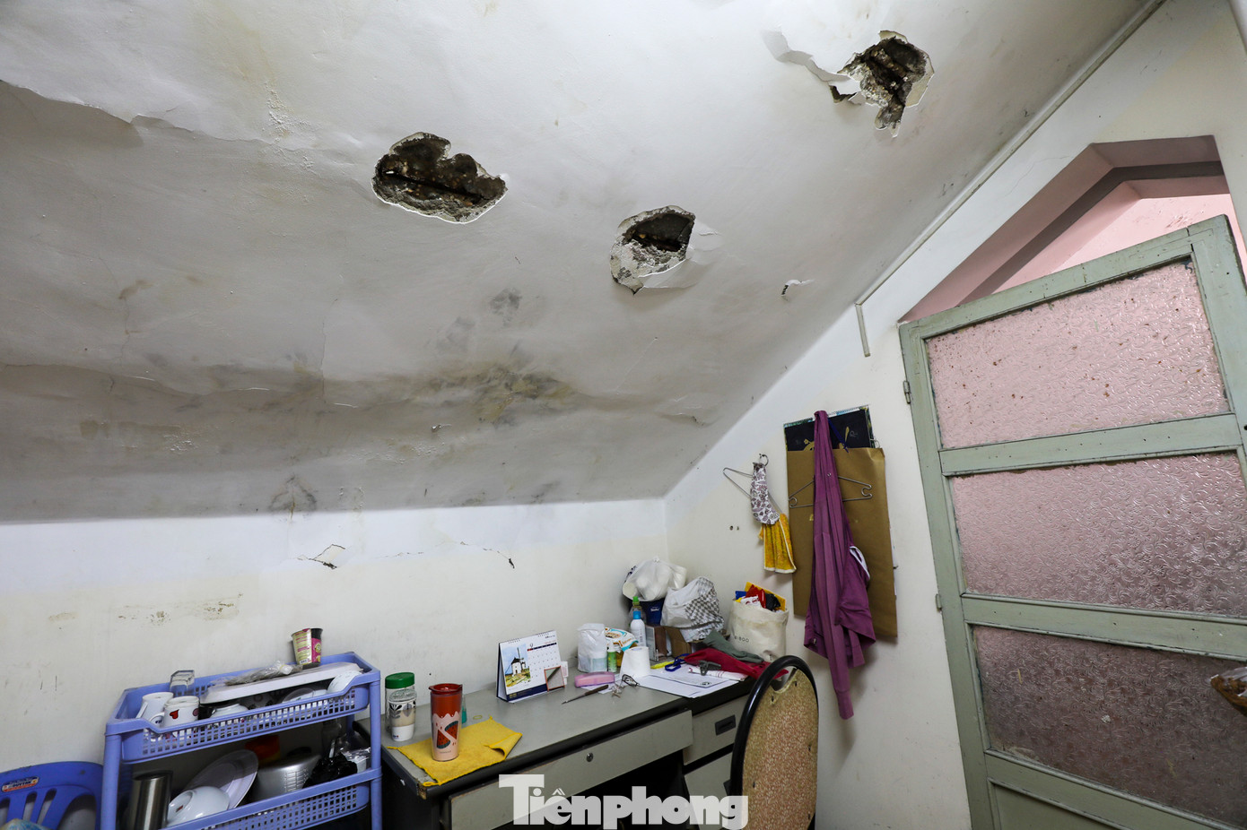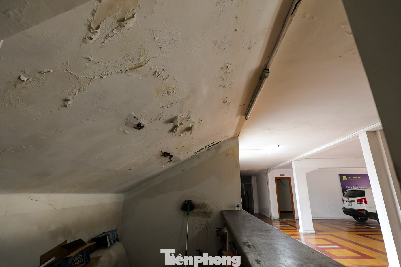 | Tường bị nứt và dột nước nghiêm trọng ngoài hành lang hầm. |