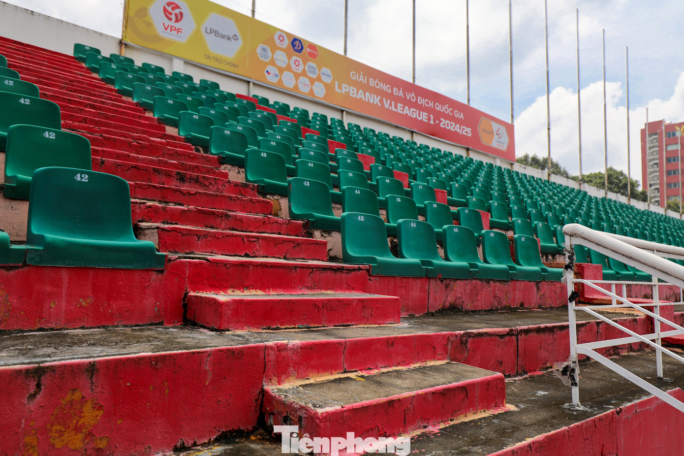 | Khu vực khán đài B ngừng việc đón khán giả vào sân đã hơn một năm nay. Phía ngoài sân được khai thác dùng làm phòng sinh hoạt của đội trẻ TPHCM. |