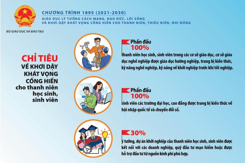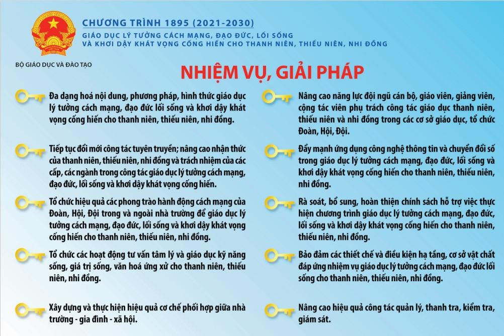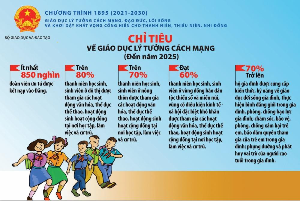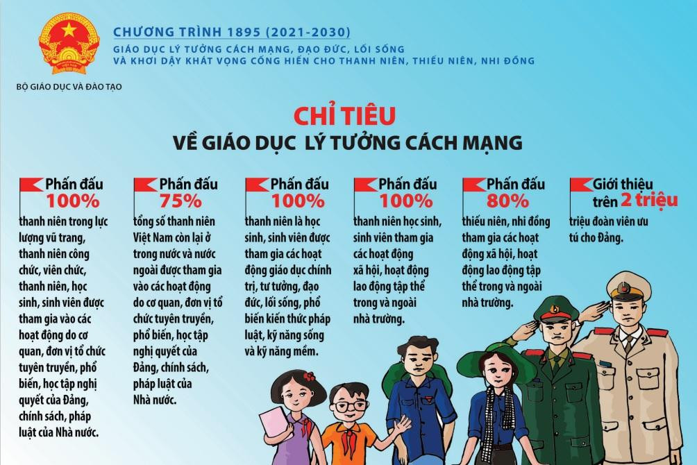 Trên cơ sở xác định “tài năng, trí tuệ, phẩm chất của con người Việt Nam là trung tâm, mục tiêu và động lực phát triển quan trọng nhất của đất nước”, Đảng, Nhà nước, các cấp, bộ, ngành, các gia đình, nhà trường và toàn xã hội luôn quan tâm đến công tác giáo dục lý tưởng cách mạng, đạo đức lối sống cho thanh niên, thiếu niên, nhi đồng. Ngày 11/11/2021, Thủ tướng Chính phủ đã phê duyệt Quyết định số 1895/QĐ-TTg ban hành Chương trình “Tăng cường giáo dục lý tưởng cách mạng, đạo đức, lối sống và khơi dậy khát vọng cống hiến cho thanh thiếu niên, nhi đồng giai đoạn 2021-2030”.