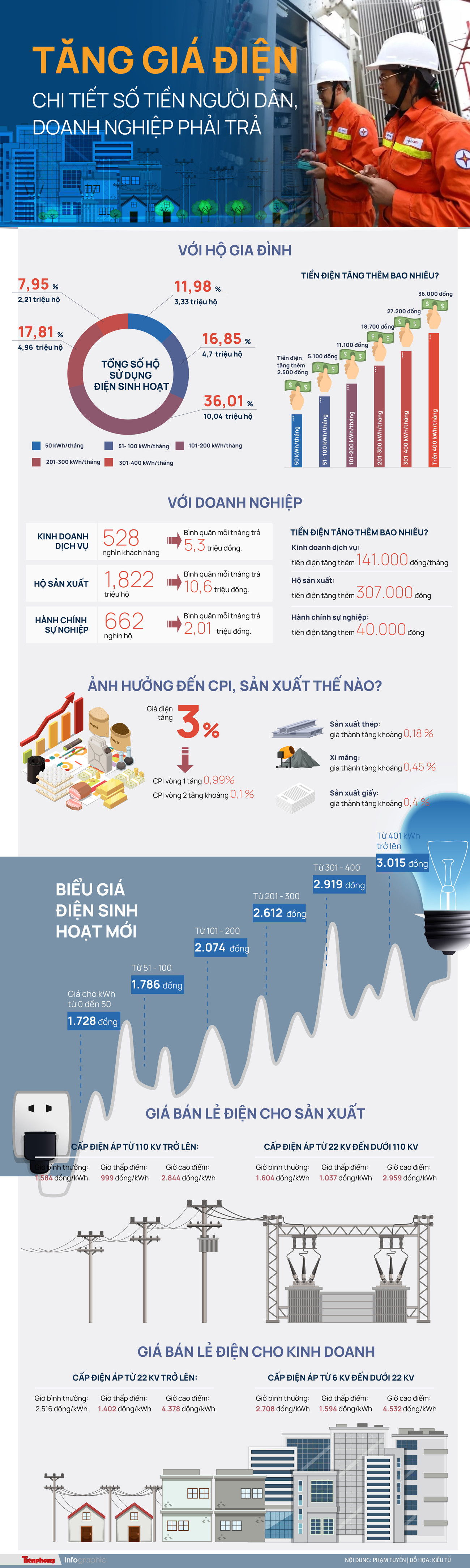 Tăng giá điện: Chi tiết số tiền người dân, doanh nghiệp phải trả