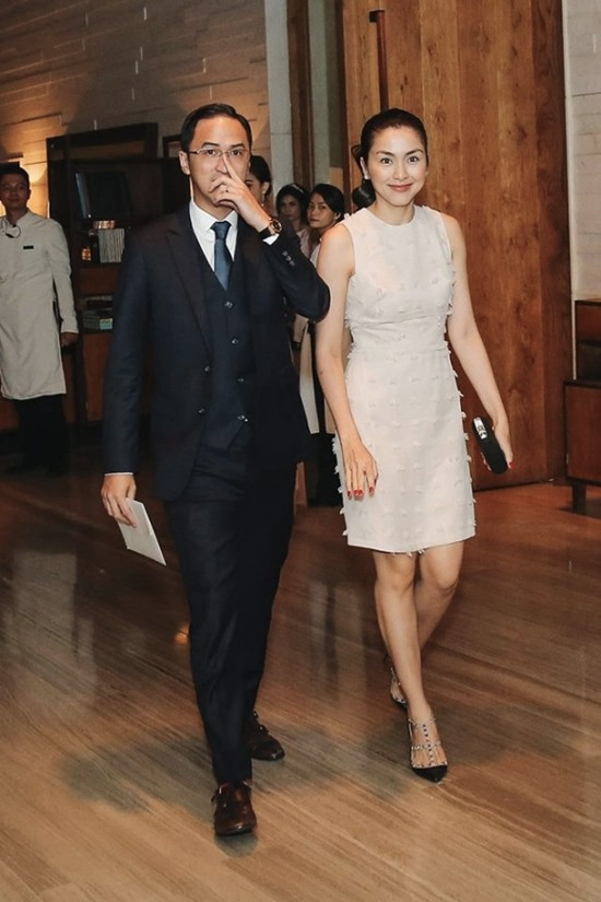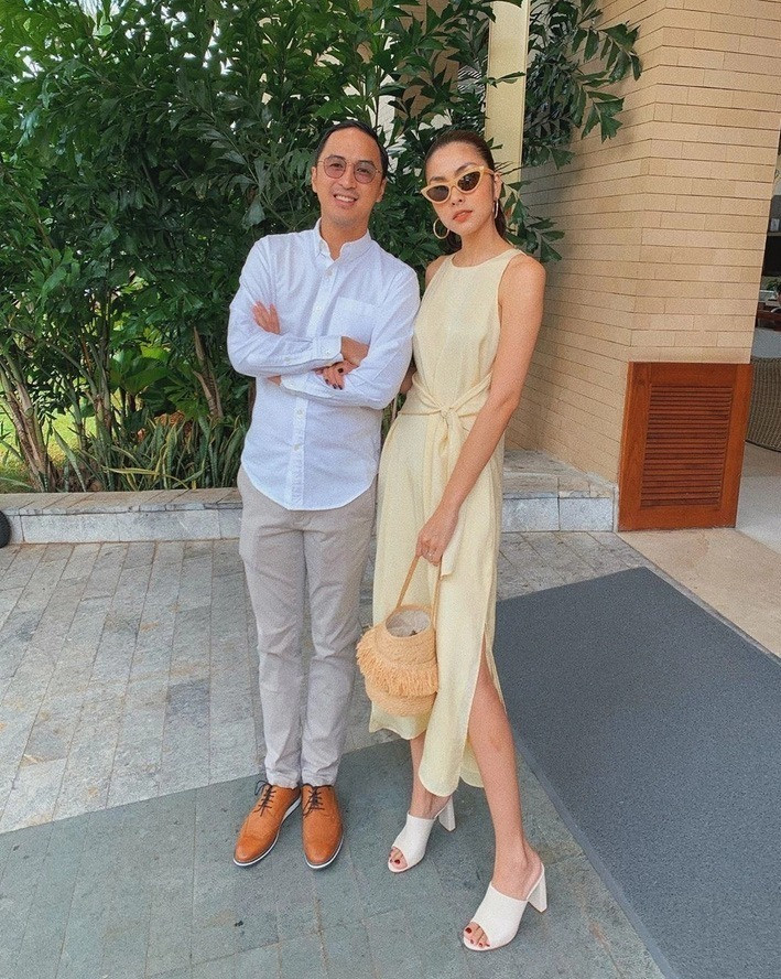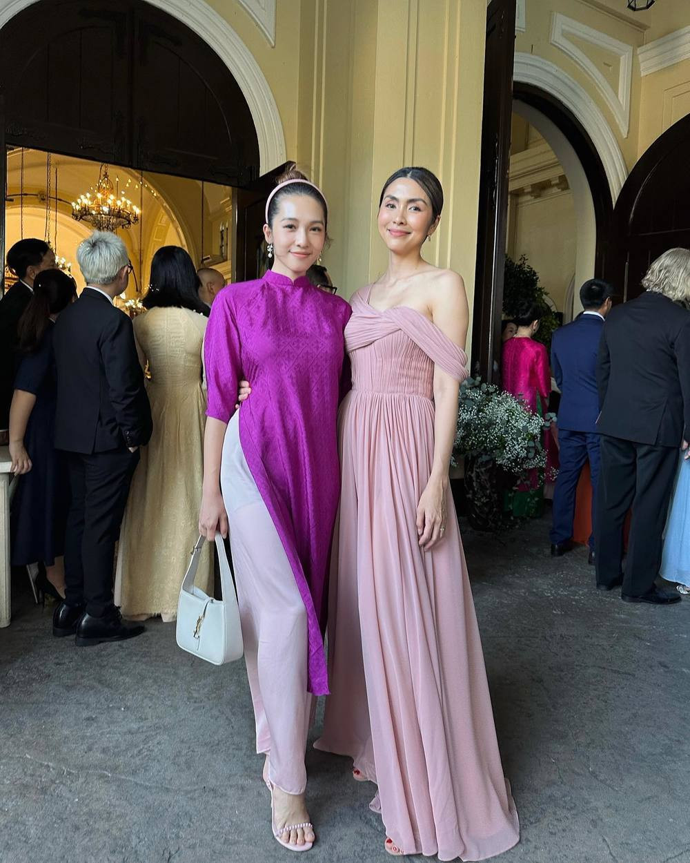 Tăng Thanh Hà được khen rất tinh tế khi chọn váy áo có kiểu dáng đơn giản, màu sắc nhã nhặn để không lấn át cô dâu. Bù lại, cô vẫn tạo được điểm nhấn cho tổng thể với kính mát có kiểu dáng độc đáo hoặc giày và túi đồng điệu.