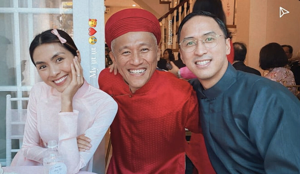Cũng có lúc, nàng dâu hào môn chọn áo dài khi dự tiệc cưới. Với bộ áo dài hồng ngọt ngào kèm theo cặp nơ cùng màu, Tăng Thanh Hà được khen trẻ như sinh viên.