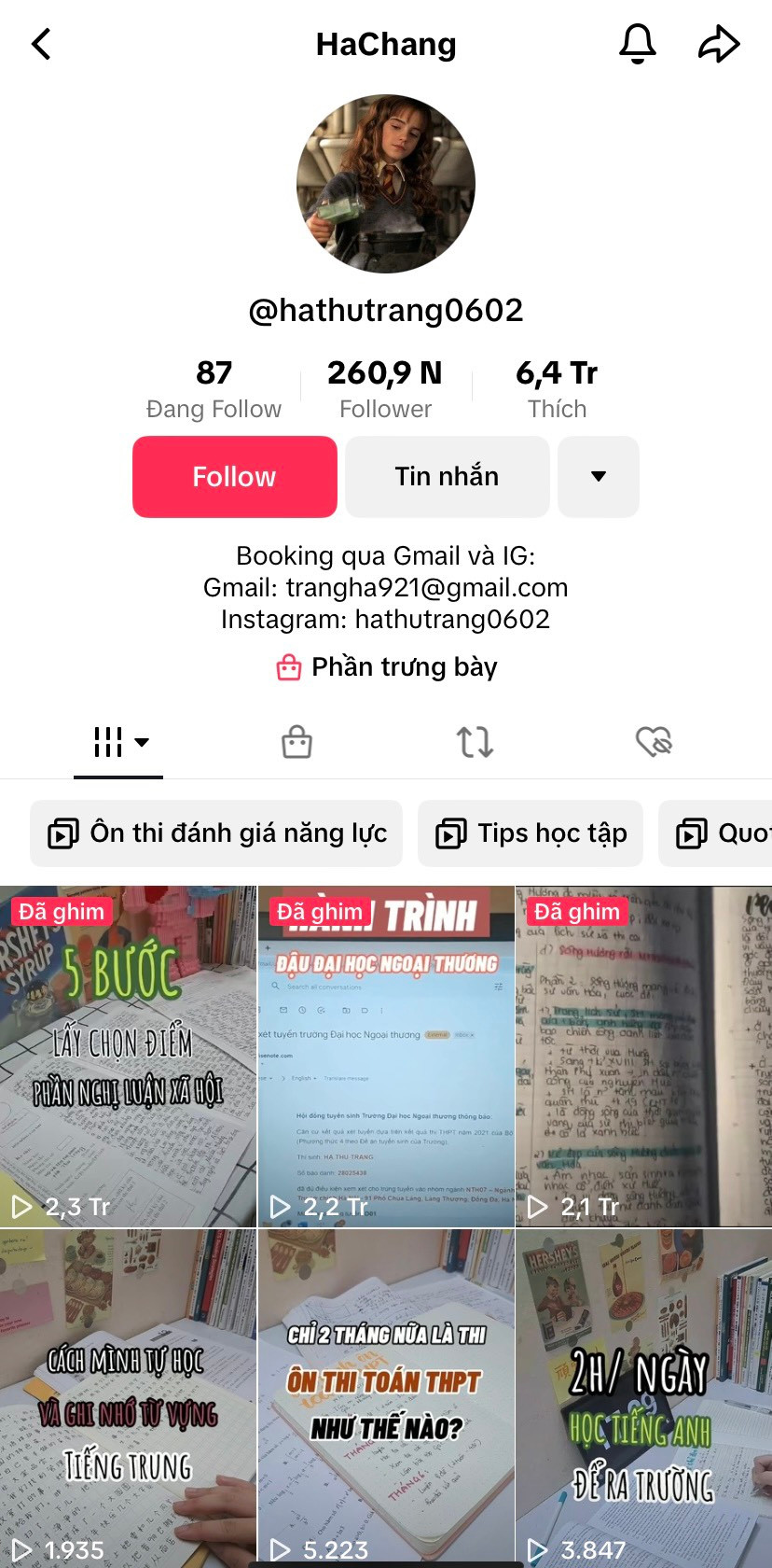 Chủ nhân của kênh Tóp Tóp HaChang (@hathutrang0602) cũng là một FTU-er với điểm số “khủng”. Cô không chỉ hướng dẫn teen phương pháp học tập, chữa đề để đạt được điểm số mong muốn mà còn đưa ra những mẹo “chống liệt” với những môn mà teen học mãi mà vẫn thấy “nó lạ lắm”.