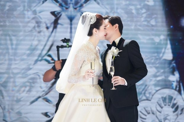 Trong hôn lễ vừa diễn ra ở Hà Nội, Doãn Hải My đã thay tới ba bộ váy cưới. Tất nhiên bộ váy đặc biệt nhất, lộng lẫy nhất sẽ dành cho thời khắc làm lễ trên sân khấu, khi cô dâu chú rể trao nhẫn và nguyện ước trăm năm bên nhau.