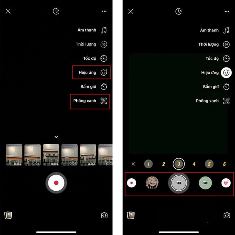 Bước 4: Chọn Hiệu ứng để thêm hiệu ứng vào > Chọn Phông xanh để lựa phông theo sở thích.