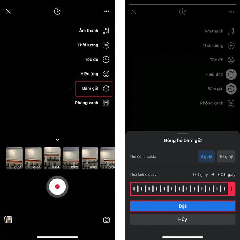 Bước 5: Chọn Bấm giờ điều chỉnh thời gian mong muốn và nhấn Đặt.