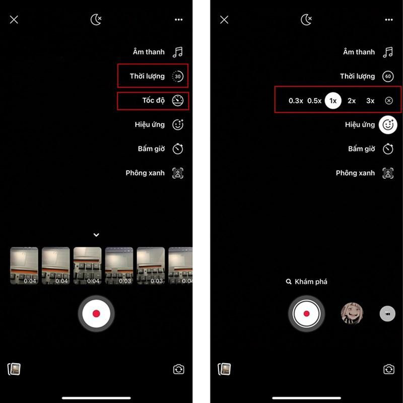 Bước 3: Chọn Thời lượng để chỉnh thời gian quay, tối đa là 1 phút > Chọn Tốc độ để chỉnh quay video nhanh hay chậm.