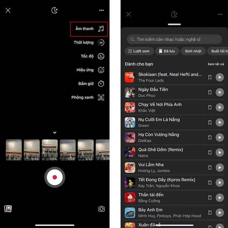 Bước 2: Bạn có thể chọn bài hát để chèn video khi nhấn vào Âm thanh.