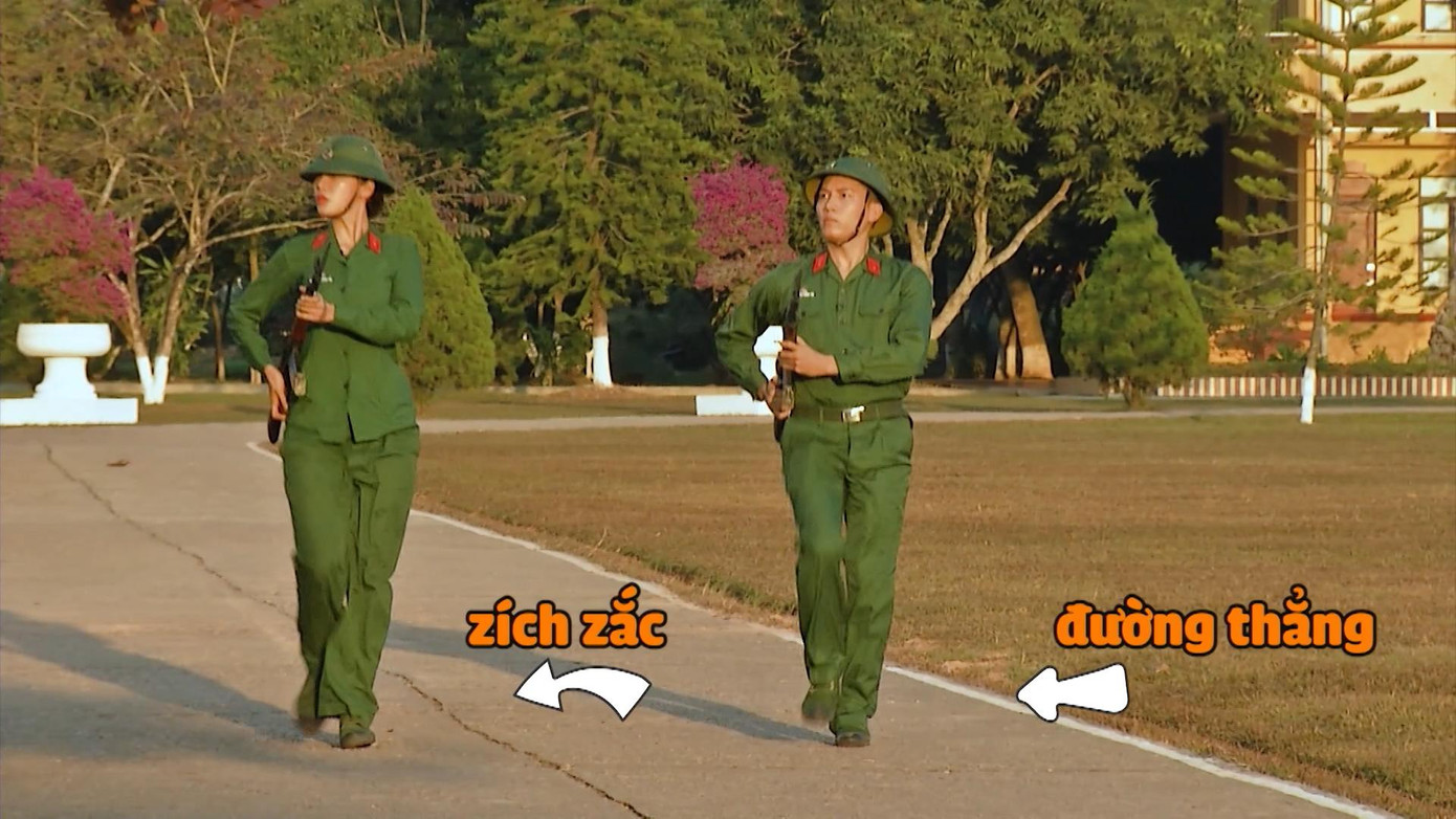 Nhìn S.T thực hiện động tác, Hòa Minzy và Puka không nén được bật cười. Điều này khiến Trung đội trưởng phải dừng huấn luyện và yêu cầu hai chiến sĩ lên thực hiện động tác đi đều. Sau khi thực hiện, Trung đội trưởng đã phân tích những điểm sai của cả hai cô gái và khách quan nói rằng, đây là động tác khó, các chiến sĩ mới cần quan sát chăm chú để nắm được rõ hơn.