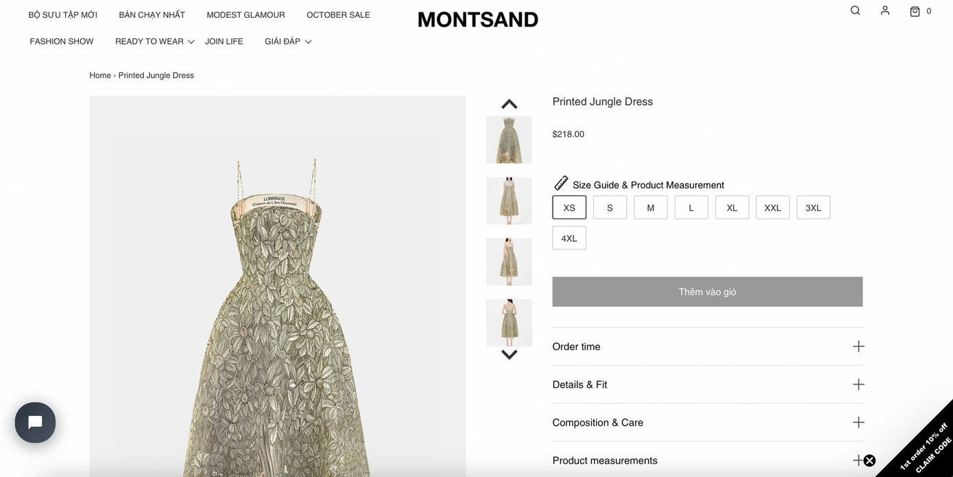 Thiết kế này được ra mắt vào 4 năm trước của thương hiệu Việt có tên Montsand (tên cũ là Lobbster). Theo chia sẻ của thương hiệu, trang phục có tên Printed Jungle Dress lấy cảm hứng từ các sáng tạo nghệ thuật của nhà thiết kế vải, nhà thơ, tiểu thuyết gia, dịch giả và nhà hoạt động xã hội người Anh William Morris.
