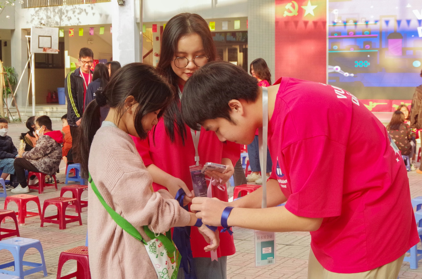 | Buổi học với các "giáo viên teen" không thiếu tiếng cười tại trường Tiểu học Thành Công B. |