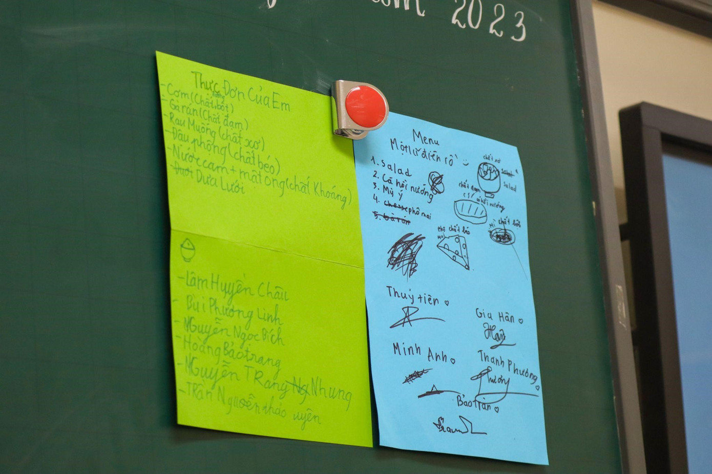 Trong hoạt động tìm hiểu về đồ ăn bẩn và thiết kế thực đơn với đủ 4 nhóm chất, tween trường Tiểu học Thành Công B đã được hướng dẫn thiết kế thực đơn riêng đầy bắt mắt.