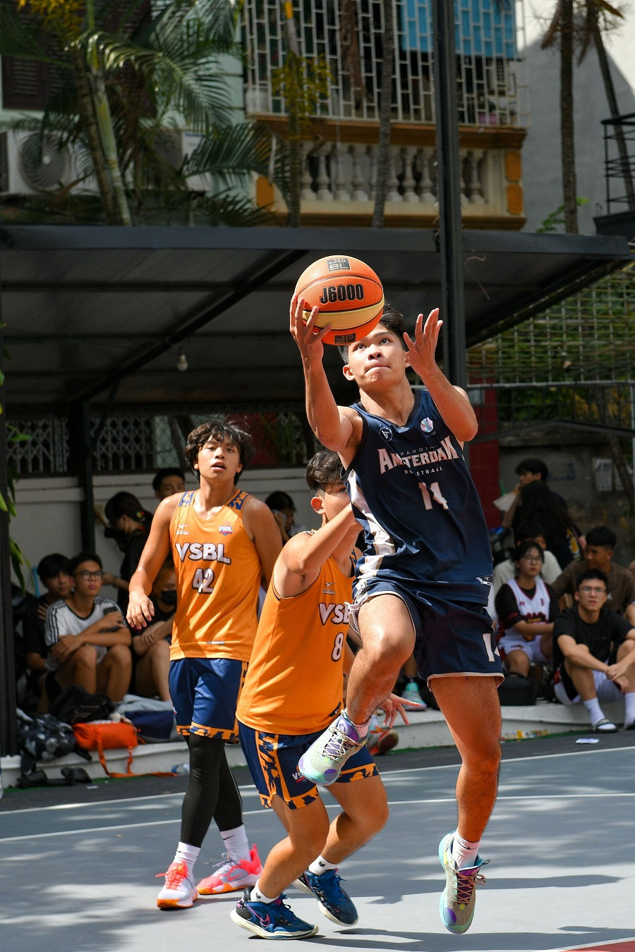 | Cao Phạm Gia Bách (lớp 12, THPT Kim Liên) với những cú ném rổ đẹp mắt trở thành MVP ở hạng mục nam. |