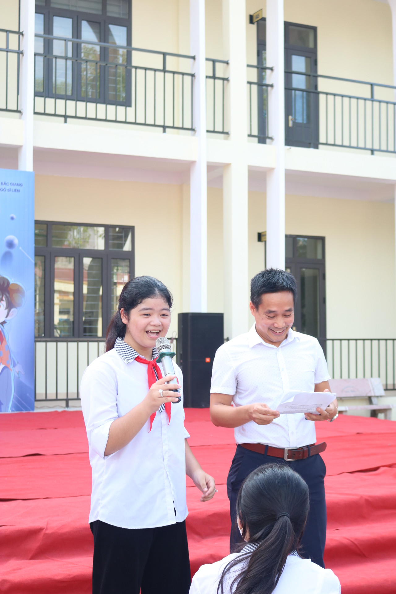 Cô bạn Hoàng Gia Hân (lớp 8A4) giành được một phần quà ở phần mini game và cũng là bạn ấy mạnh dạn giơ tay mang về tiếp một phần quà nữa ở phần giao lưu cùng thầy Trọng Tùng. Gia Hân là teen có trong tay nhiều quà nhất ngày thứ Hai của trường THCS Ngô Sĩ Liên, cũng là "anh hùng" trong mắt hội bạn "hướng nội", biết đáp án mà sợ run nói sai nên "khum" dám xung phong trả lời.