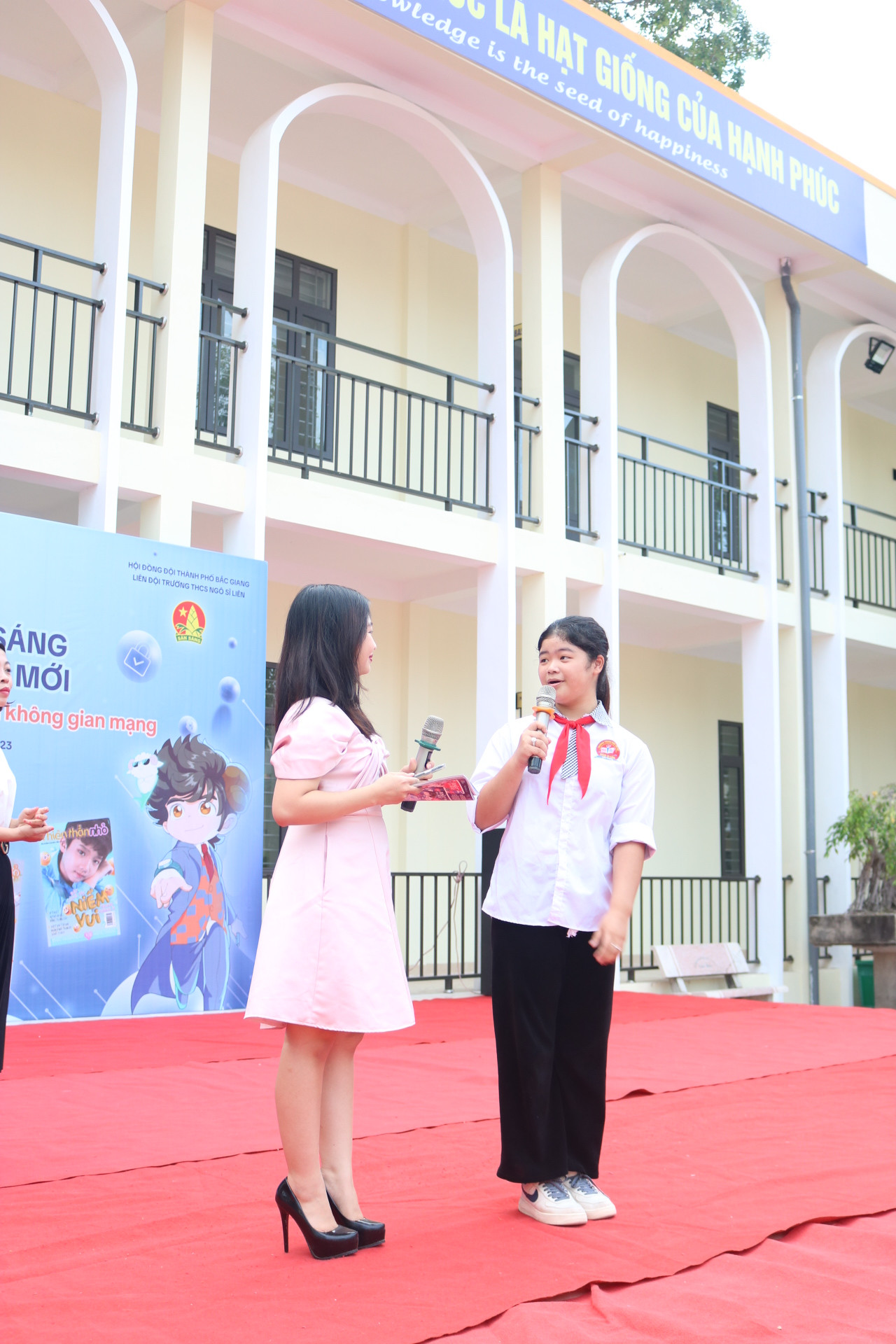 Lần đầu gặp mặt nhưng tween của trường THCS Ngô Sĩ Liên chẳng ngại chút nào mà "giật quà" ào ào khi trả lời các câu hỏi trong phần mini game khởi động. Từ các câu hỏi về các ấn phẩm quen thuộc như Hoa Học Trò, Thiên Thần Nhỏ, Lớp Học Mật Ngữ, Bé Nấm Lùn..., cho tới các câu hỏi "thân quen" liên quan đến ngôi trường thân yêu..., tất tần tật đều được các bạn giải đáp "nhanh như gió".