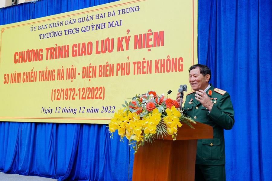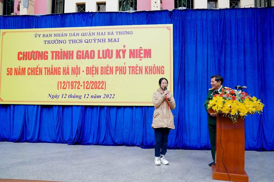 Mới đây, thầy và trò trường THCS Quỳnh Mai (Hà Nội) đã có buổi giao lưu với Trung tướng - Anh hùng Lực lượng vũ trang nhân dân Phạm Tuân, nhân dịp kỷ niệm 50 năm chiến thắng Điện Biên Phủ trên không (12/1972 - 12/2022),