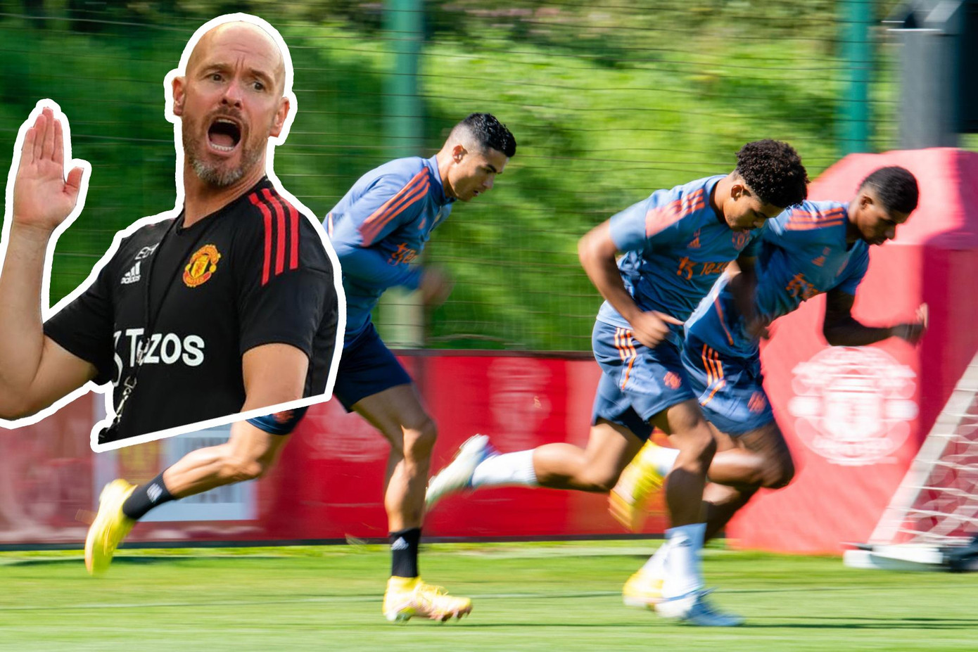 Trên sân tập, Ten Hag đã nhấn mạnh việc MU chạy ít hơn Brentford 13,8 km (95,6 km so với 109,4 km), đồng thời chỉ thực hiện 65 pha chạy nước rút, trong khi đối thủ là 90. Vì vậy, trừng phạt bằng cách yêu cầu mỗi cầu thủ phải chạy bù 13,8 km quanh Carrington dưới cái nóng hơn 30 độ C.
