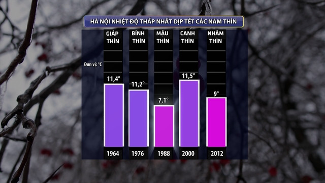 Trong 60 năm qua, miền Bắc đã trải qua 5 Tết con Rồng trong thời tiết giá rét. Tại Hà Nội, nhiệt độ thấp nhất Tết Giáp Thìn năm 1964 là 11,4 độ; Tết Bính Thìn năm 1976 là 11,2 độ; Tết Mậu Thìn năm 1988 là 7,1 độ (đây là mức nhiệt thấp nhất vào tháng 2 kể từ năm 1977 tính tới thời điểm đó); Tết Canh Thìn năm 2000 là 11,5 độ; Tết Nhâm Thìn 2012 gần đây nhất là 9 độ.