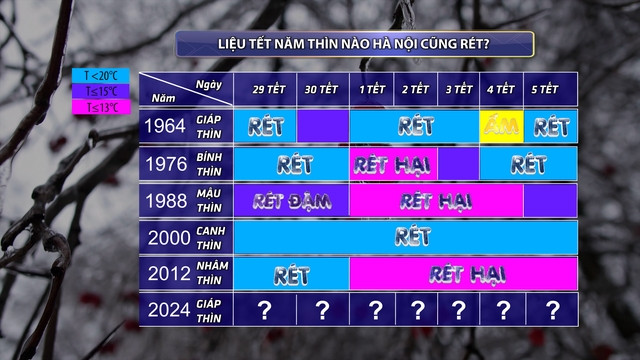 Thời gian rét trong các Tết năm Thìn còn có 1 đặc điểm chung nữa đó là đều rét từ 29 Tết đến mùng 5 Tết. Thậm chí năm 1988 và năm 2012 còn xuất hiện rét đậm, rét hại liên tục.