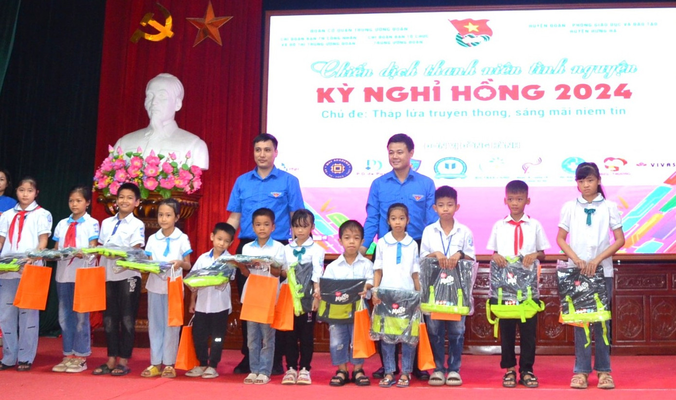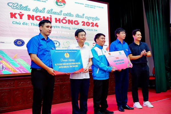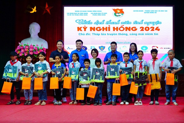 Tại chương trình, Chi đoàn Ban Tổ chức và Chi đoàn Ban Thanh niên công nhân và đô thị T.Ư Đoàn phối hợp với các đơn vị trao tặng 7 bộ máy tính cho 7 xã tham gia mô hình “Chính quyền thân thiện, vì nhân dân phục vụ” trên địa bàn huyện với số tiền trên 50 triệu đồng; trao tặng 200 ba lô và 200 bộ dụng cụ học tập cho các em thiếu niên, nhi đồng có hoàn cảnh khó khăn vươn lên trong học tập; trao tặng 2 tủ sách với 1.000 quyển sách cùng với 1.000 voucher học tiếng Anh online trọn đời (dành cho học sinh từ lớp 3 đến lớp 9) với tổng giá trị 1 tỷ đồng cho Phòng GD&ĐT Huyện; trao tặng 300 tài khoản Canva giúp cán bộ Đoàn ứng dụng công nghệ thông tin, hỗ trợ thiết kế các ấn phẩm truyền thông.