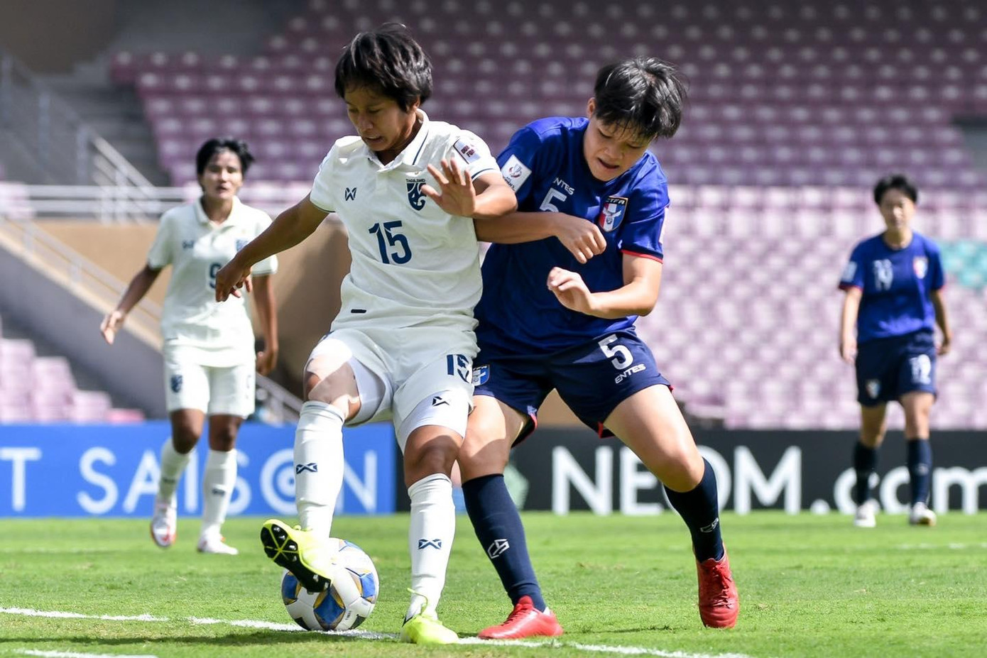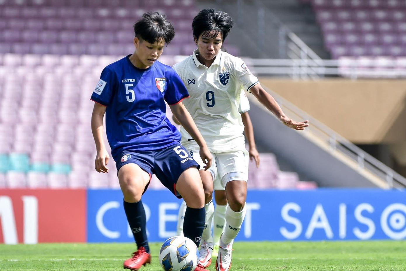 Tuy nhiên, đại diện của Đông Nam Á vẫn là đội bóng áp đảo trong hiệp 1. Các cô gái Thái Lan chơi tốt hơn và tạo ra nhiều áp lực về phía cầu môn Đài Bắc Trung Hoa. Trong khi đó, Đài Bắc Trung Hoa lại thi đấu khá rời rạc và để cho đối phương kiểm soát bóng phần lớn thời gian.