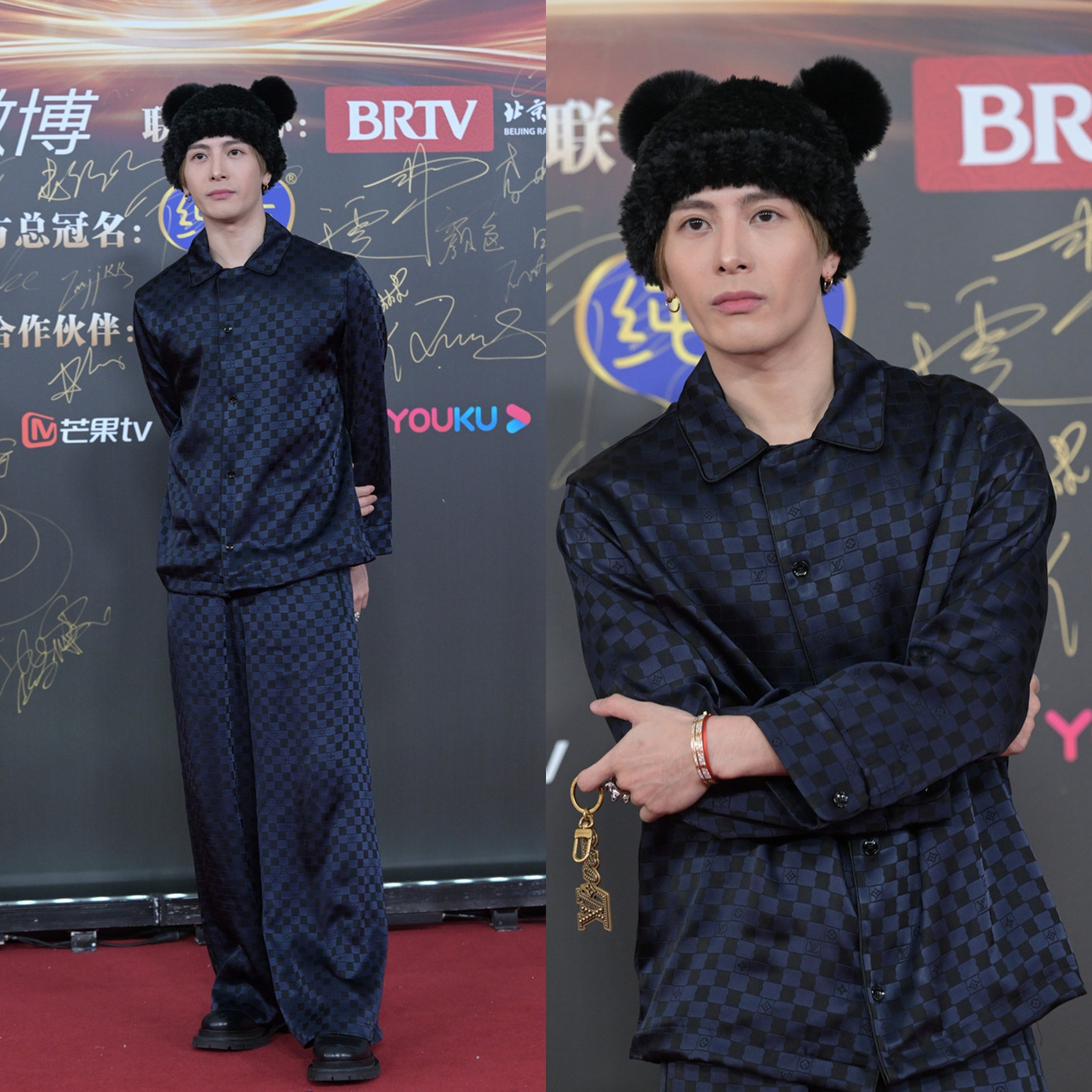 Jackson Wang độc lạ giữa dàn âu phục, nổi bần bật với bộ pijama khiến Cnet cười ngất. Outfit đơn giản như vừa ngủ dậy "bị ép" đi thảm đỏ này là nguyên cây của Louis Vuitton.