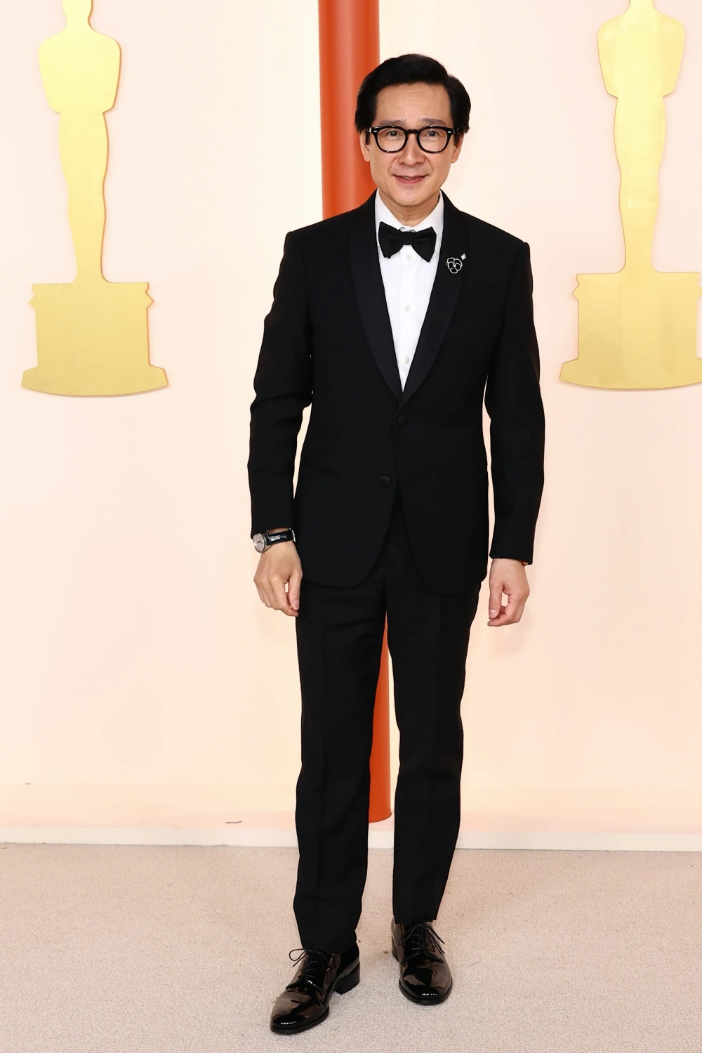 Chủ nhân của tượng vàng Oscar cho Nam diễn viên phụ xuất sắc nhất Quan Kế Huy trong thiết kế của Armani Prive, trang sức Fred Leighton và David Yurman.