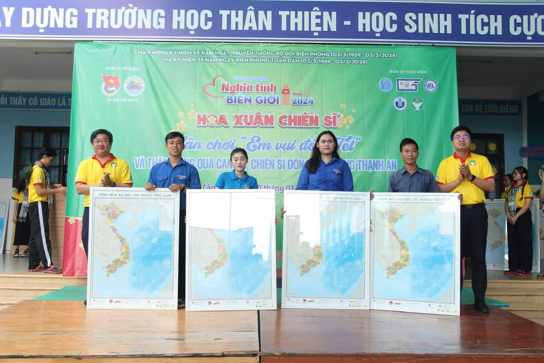 Đoàn công tác đã đến dâng hương Chủ tịch Hồ Chí Minh tại Phòng tưởng niệm Chủ tịch Hồ Chí Minh trên xã đảo. Tại Lễ khai mạc sân chơi "Em vui đón Tết" trong khuôn khổ chương trình "Hoa Xuân chiến sĩ", lãnh đạo trường và Đoàn công tác đã thực hiện trao tặng 25 phần quà Tết đến các thanh thiếu nhi tại xã đảo Thạnh An, thay cho những lời chúc tốt đẹp nhất gửi đến các em nhân dịp Tết Giáp Thìn năm 2024.