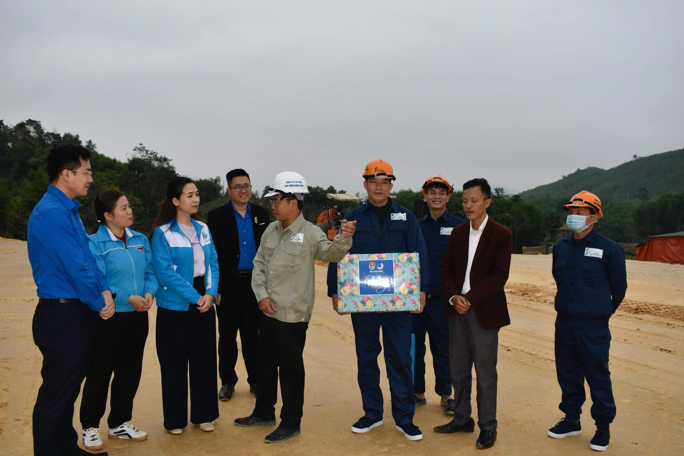 | Đoàn công tác thăm hỏi, tặng quà động viên các đơn vị thi công. Ảnh: TĐTQ |