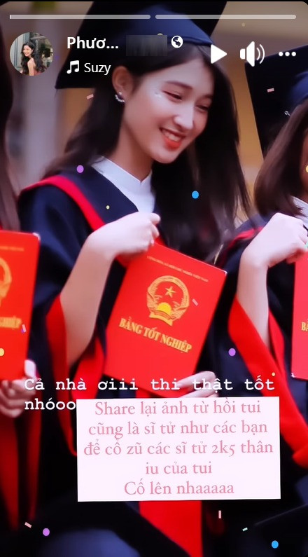 Nhân kỳ thi tốt nghiệp THPT Quốc gia đang diễn ra, nhiều sao Việt đã gửi lời chúc đến các sĩ tử, trong đó có Á hậu Phương Nhi. Nàng hậu còn chia sẻ bức ảnh trong lễ tốt nghiệp THPT thay cho lời mong mỏi các sĩ tử đều giành được kết quả tốt.