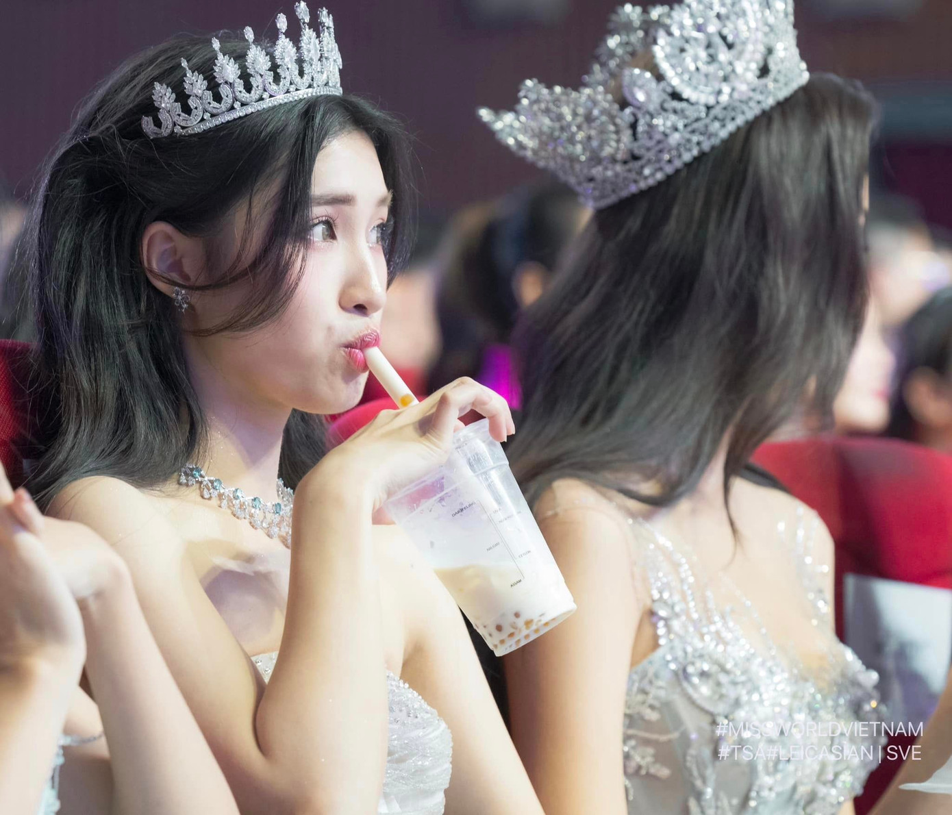 Và chính những khoảnh khắc đời thường đáng yêu như thế này càng khiến netizen yêu mến Phương Nhi hơn, khi nàng hậu cũng như mọi Gen Z khác, rất mê trà sữa và không thể ngừng nhâm nhi dù đang tham gia sự kiện.