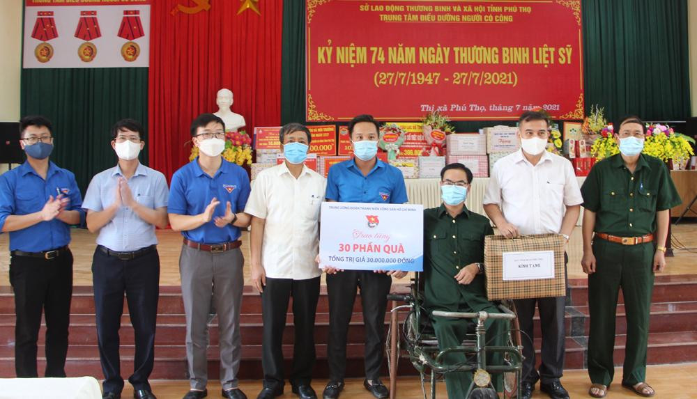 Đặc biệt, trong các ngày từ 24 đến 26/7, Ban Bí thư T.Ư Đoàn đã tổng hợp và chuyển các phần quà gửi về 5 tỉnh, thành phố: Hà Nội, Bắc Ninh, Bắc Giang, Hà Giang, Phú Thọ để thăm hỏi, tặng quà các thương binh, bệnh binh đang điều trị tại các Trung tâm nuôi dưỡng, điều dưỡng người có công với cách mạng; thăm tặng quà Mẹ Việt Nam anh hùng, gia đình có công với cách mạng, với tổng số 260 suất quà, trị giá hơn 500 triệu đồng.