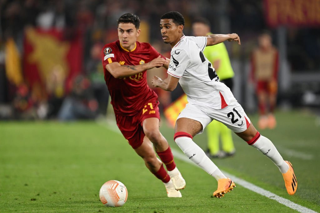 Phút 45+2, Lorenzo Pellegrini thực hiện pha treo bóng từ quả đá phạt góc bên cánh phải vào trong vòng cấm để Edoardo Bove bật cao đánh đầu nhưng Edmond Tapsoba đã kịp phá bóng giải nguy cho Leverkusen.