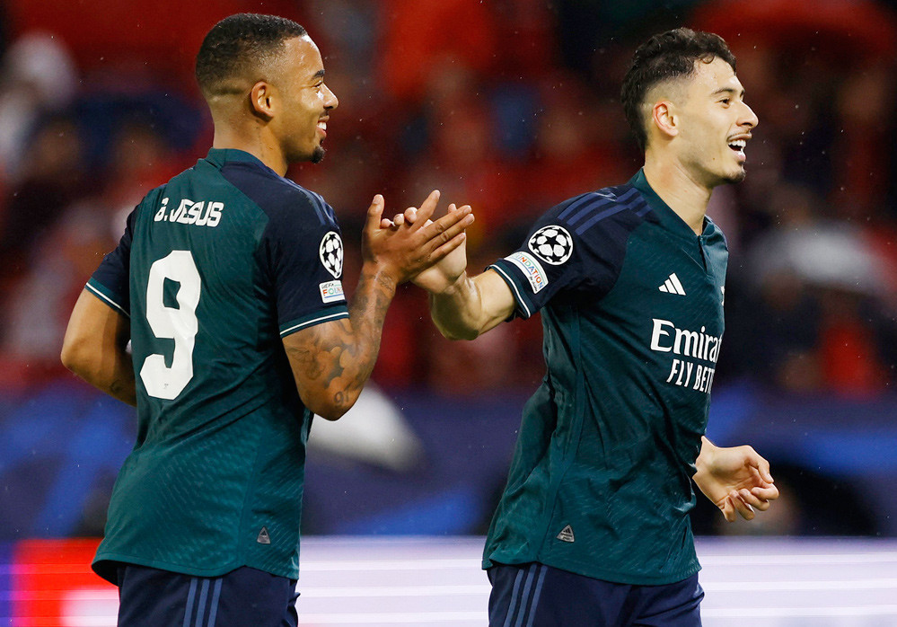 Sau khi bất ngờ bại trận trước Lens ở lượt đấu thứ 2, Arsenal rơi vào thế khó. Họ phải đánh bại Sevilla trong bối cảnh bảng đấu còn 2 cái tên khó chịu nữa là Sociedad và Benfica. Quyết tâm của Arsenal được thể hiện từ sớm. Phút thứ 8, Jesus thực hiện đường chuyền mở ra cơ hội cho Martinelli nhưng tiền đạo đồng hương Brazil của anh không thắng được thủ môn bên phía Sevilla.