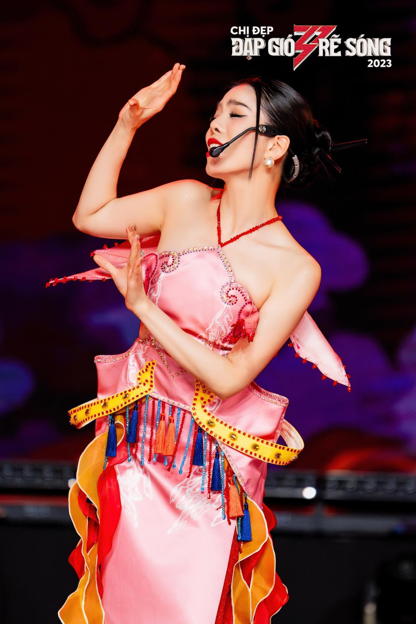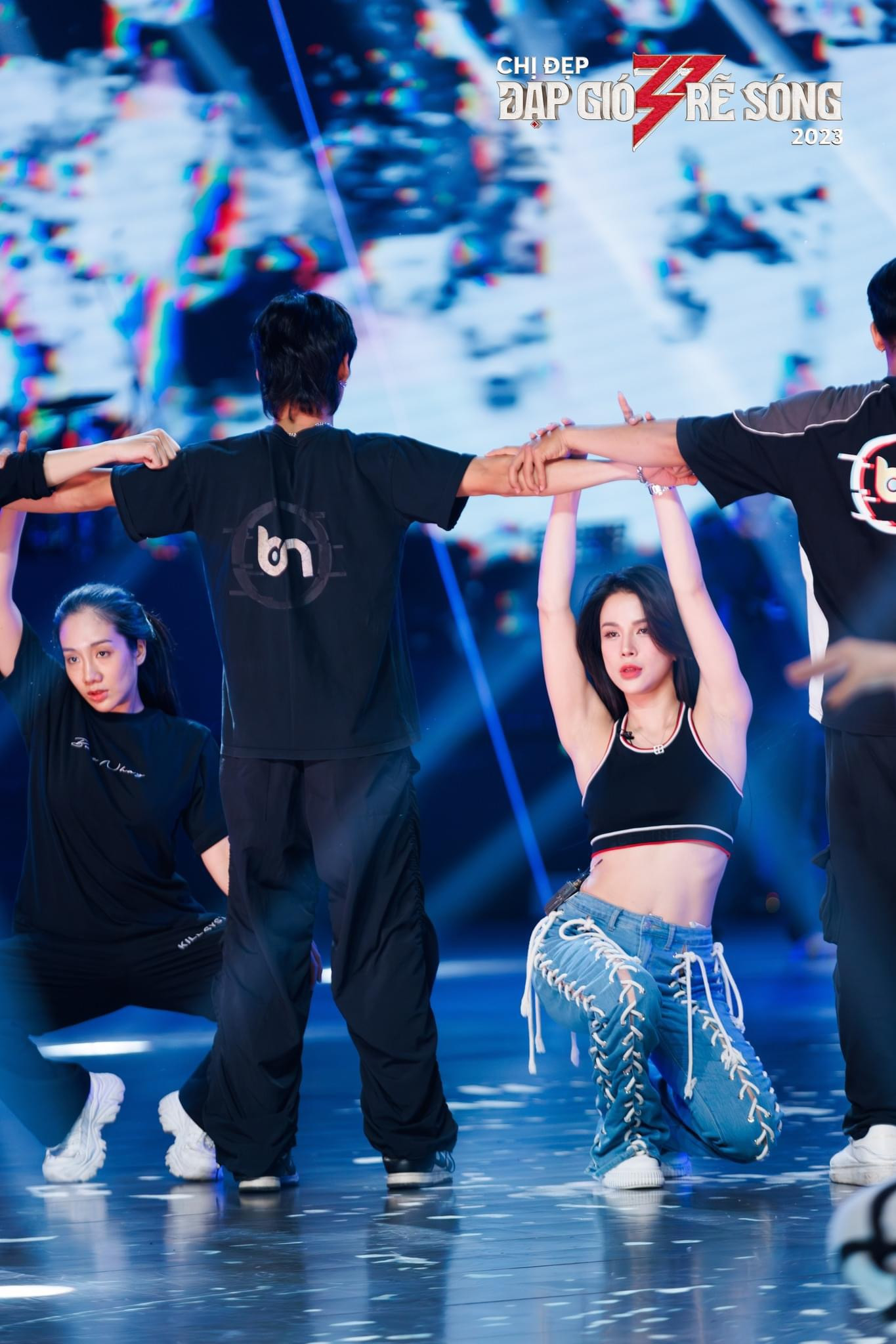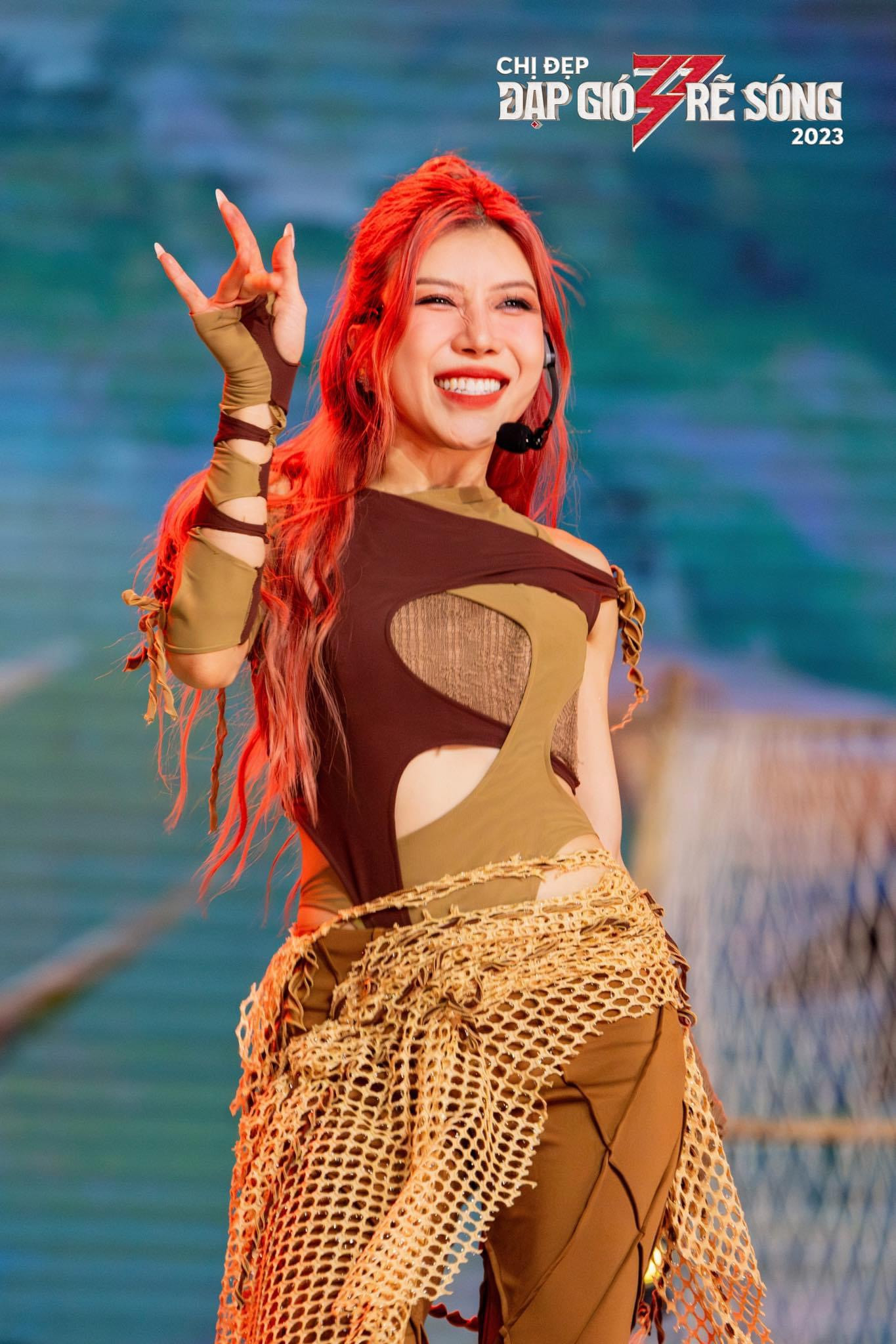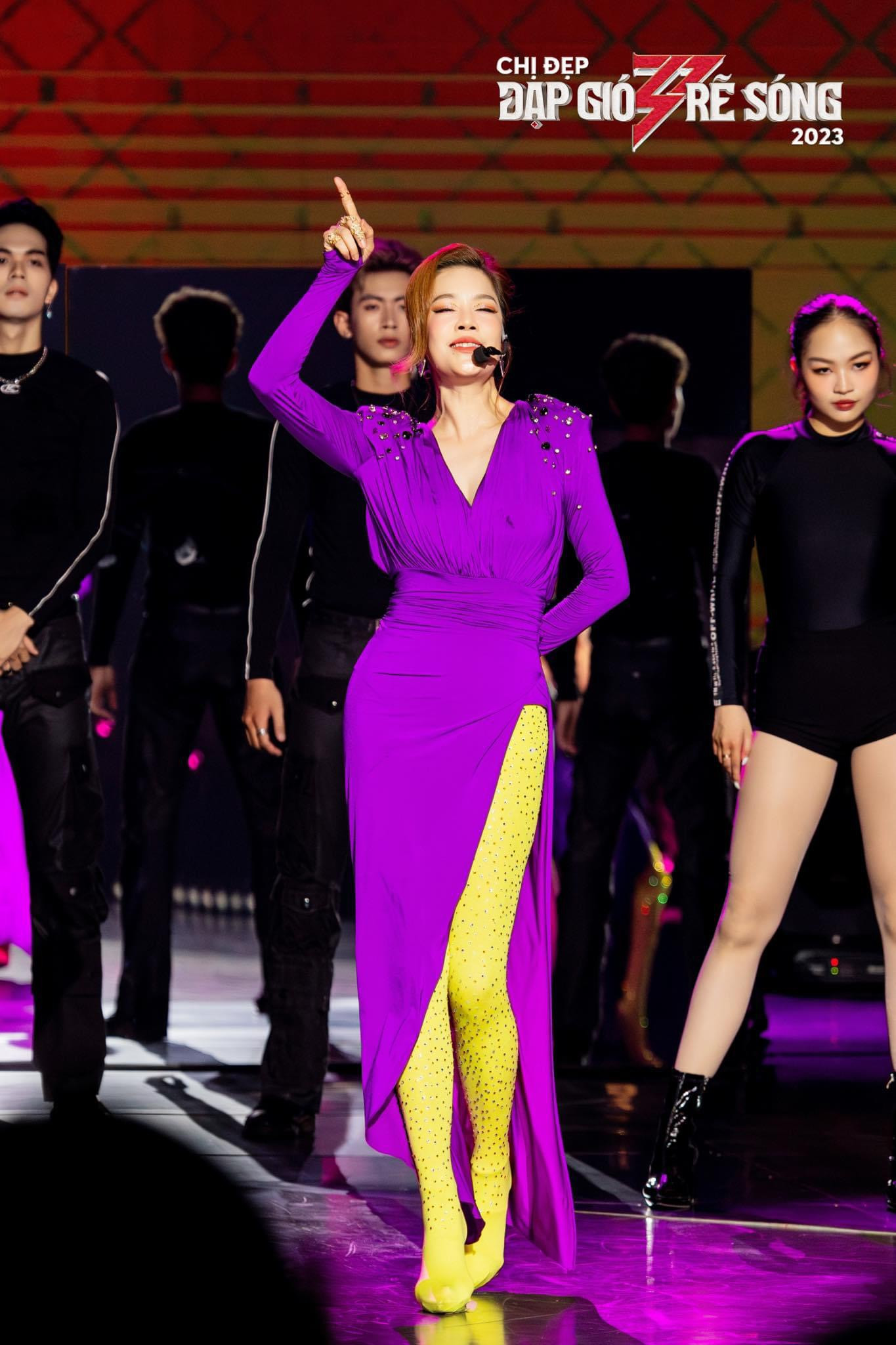 Trong tập 12 của Chị Đẹp Đạp Gió Rẽ Sóng, Diệp Lâm Anh vừa hát vừa nhảy cùng vũ đoàn với nhiều phong cách latin, hip hop và rap. Cô nàng còn khiến sân khấu "bùng nổ" trong màn nhào lộn, giữ thăng bằng đầy chuyên nghiệp.